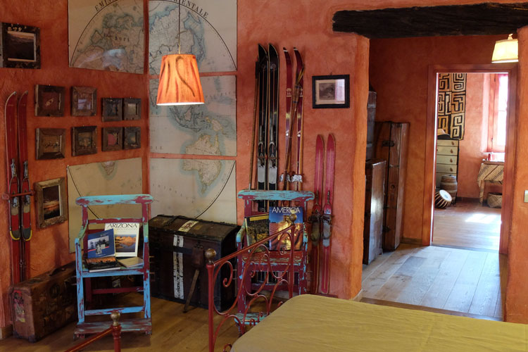 Ospitalità dunque, ma non di quelle banali: basta uno sguardo ai locali del ristorante e alle stanze destinate agli ospiti per capire il perché. Gli spazi dell’Oasi ci fanno entrare nella dimensione dei sogni e delle visioni di Gaetano Besana, fotografo di moda in giro per il mondo fino al 1999, che nella nuova occupazione ha voluto portarsi i colori delle sfilate e le atmosfere esotiche degli innumerevoli viaggi. Che hanno ispirato il layout della stanza del fieno (con le balle che fanno da base ai mobili), e poi della stanza dell’amaca, e qui vi lascio immaginare, e ancora delle peonie, del ferro, dello zen, del giardiniere, delle vigne, dell’arcobaleno, del viaggiatore, ognuna di esse col suo stile ed i suoi colori pastello, addirittura ognuna col suo odore unico e irripetibile … di quelli che non si comprano al supermercato, ma risultano dalla combinazione di legni, tende, bronzi e complementi d’arredo. C’è un gioco fiabesco e fanciullesco, insomma, alla base delle idee di Gaetano Besana in tema di arredamento e disposizione degli spazi.