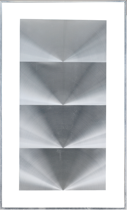 alluminio 95,5×47 cm, firma, titolo e tecnica al retro, dichiarazione d’autenticità dell’artista ed etichetta dello Studio d’Arte Valmore su foto, (datazione riportata nel catalogo della mostra).