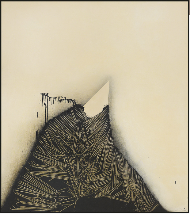“La punta”, olio su tela tamburata 160×140 cm di Scanavino realizzata nel ’74 pone nuovamente in risalto la centralità del segno in perenne metamorfosi come mezzo di espressione. La stima fornita da Meeting Art è di 54.000 / 60.000 € e il suo prezzo di partenza è di 30.000 €.