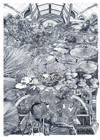 Quelle di Lucille Clerc sono illustrazioni raffinate e minuziose, che raccontano di mondi botanici e cittadini, vibranti di dettagli particolareggiati vanno a ricreare come in tour favoloso le tappe di viaggi quotidiani che sanno ammantarsi di inaspettato. Nella serie London Landmarks, per esempio, le tappe più iconiche della capitale britannica si affastellano tra loro, riprodotti con dovizia, ma spostati, ruotati, esplosi e sovrapposti, come in un viaggio attraverso i ricordi, o come la ricognizione di spazi noti attraverso la prospettiva di un colibrì intento in un’esplorazione. In questo modo un nuovo fascino, inedito e al contempo familiare, è donato al quotidiano e all’urbano che ci circonda. Nella serie dedicata ai Kew Gardens assistiamo a una vero e proprio florilegio botanico che esplode assieme alle eleganti strutture in ferro e vetro delle serre di Decimus Burton.