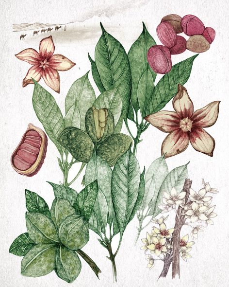 Un viaggio simile lo possiamo fare con Il Giro del mondo in 80 alberi di Jonathan Drori, ambasciatore del WWF e amministratore fiduciario per nove anni proprio dei Royal Botanic Gardens di Kew. Lucille Clerc è stata chiamata difatti a illustrare quest’opera che, proprio come il viaggio di Phileas Fogg, in 80 tappe ci porta in giro per il mondo attraverso le storie di altrettanti alberi. Sono tutte storie vere, spesso strane, popolate da monaci giapponesi che si automummificano, capre che si arrampicano sugli alberi, noci radioattive e arrivano perfino alle origini della fondazione di Venezia. L’ontano difatti, materiale principale con cui sono state costruite le fondamenta della città, è un albero che si è adattato a vivere in luoghi umidi e ha un legno che non imputridisce a contatto con l’acqua.