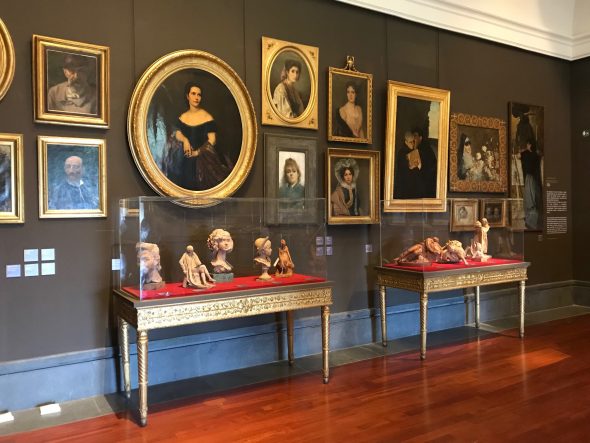 Sull’altra parete, invece, il tema principale è il paesaggio, nato nel Seicento e affermatosi nei secoli successivi con obiettivi diversi: dalla lucida veduta settecentesca all’estetica romantica del sublime nell’Ottocento. Protagonista indiscussa è la natura incontaminata e dominatrice, fino alla grande rivoluzione attuata dall’Impressionismo. Innumerevoli sono in sala i dipinti con scorci della Napoli di fine 1800, “Porta Capuana”, del 1862, di Giovanni Serritelli, riprende immagini della brulicante vita dei vicoli partenopei, fra la gente, le botteghe e le abitazioni.