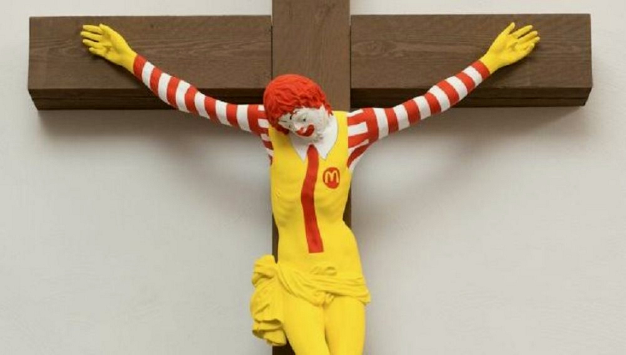 >> Fatto curioso è che le opere in mostra erano già state esibite in altri paesi senza suscitare alcuno scandalo mistico. A Haifa, invece, sono avvenute violente manifestazioni da parte di cittadini cristiani palestinesi che hanno contestato la scultura “Mc Jesus” del finlandese Leinonen, ritenuta da loro blasfema. Il Direttore del museo ha ritenuto di celare tramite una tenda ad anelli l’opera, senza però censurarla essendo questa pienamente godibile dietro il sipario e di apporre all’entrata del museo un avviso per segnalare la presenza di installazioni potenzialmente conturbanti.