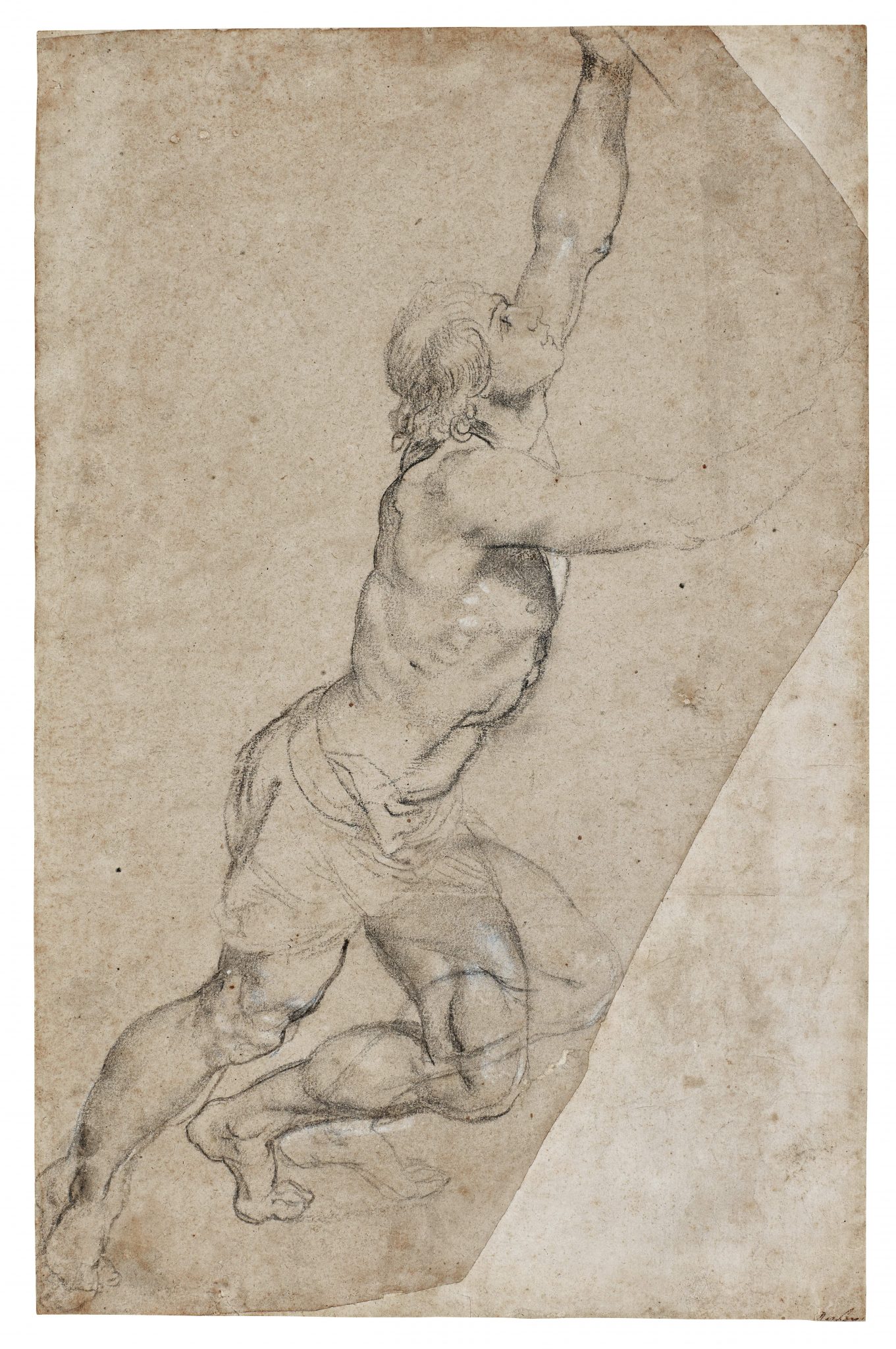 Ceduto dalla famiglia, “Nude Study of a Young Man with Raised Arms” di Peter Paul Rubens è il primo disegno di una tale importanza ad apparire sul mercato da oltre una generazione. Stimato $2.5/3.5 milioni, questo studio di un giovane uomo quasi nudo, così grande e potente, che tende i muscoli per sollevare un peso imponente sopra la sua testa, è uno dei pochi studi per figure monumentali simili a noi giunti, realizzati per la Pala d’Altare che rappresenta L’innalzamento della Croce e che Rubens dipinge per la chiesa di Santa Walburga a Anversa, subito dopo il suo ritorno dall’Italia alla fine del 1608.
