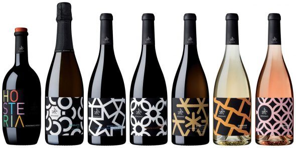 In particolare, per il vino rosso Hosteria (Pinot nero e Barbera) è stato pensato un progetto grafico a sé stante. Ho optato per una bottiglia da birra – spiega Adriano Vendramin – per colpire immediatamente il consumatore e dare forma all’idea di convivialità del grande enologo Donato Lanati, che ha scelto il nome e firmato la controetichetta di questo vino. Mentre per l’etichetta ho usato i colori vividi e disomogenei della Pop Art mantenendo lo sfondo nero, per restare coerente con le altre”. Sulla controetichetta si legge: “Abbiamo voluto chiamare questo vino Hosteria, ma allo stesso modo poteva chiamarsi Incontro o Amicizia. Per tutto il Novecento l’Osteria è stato il principale luogo di ritrovo e socializzazione, ma soprattutto di ospitalità, da cui il nome. Questo vino elegante e semplice, raffinato e leggero, è stato pensato per piacere a tutti, intenditori e non, per portare allegria e armonia a chi lo berrà”.