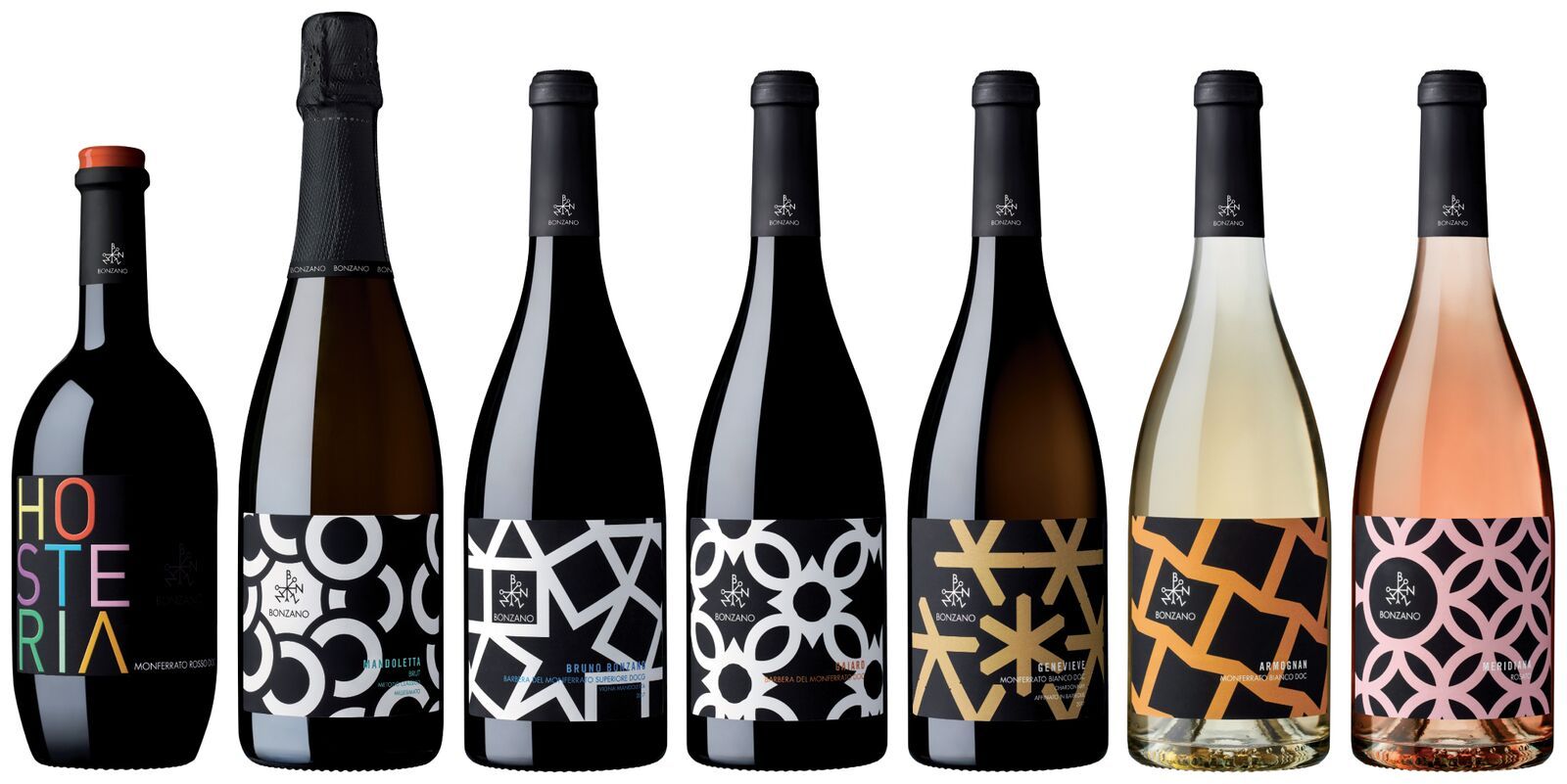 Il dialogo tra arte e vino è diventato, negli ultimi anni, sempre più frequente e le etichette delle bottiglie – al pari di una tela bianca – rappresentano spesso e volentieri il luogo d’espressione di creativi e designer. È questo il caso della Bonzano Vini, una giovane azienda del Monferrato, che ha puntato su un logo e soprattutto una grafica non convenzionali, caratterizzati da elementi geometrici e da colori pop su sfondo nero.