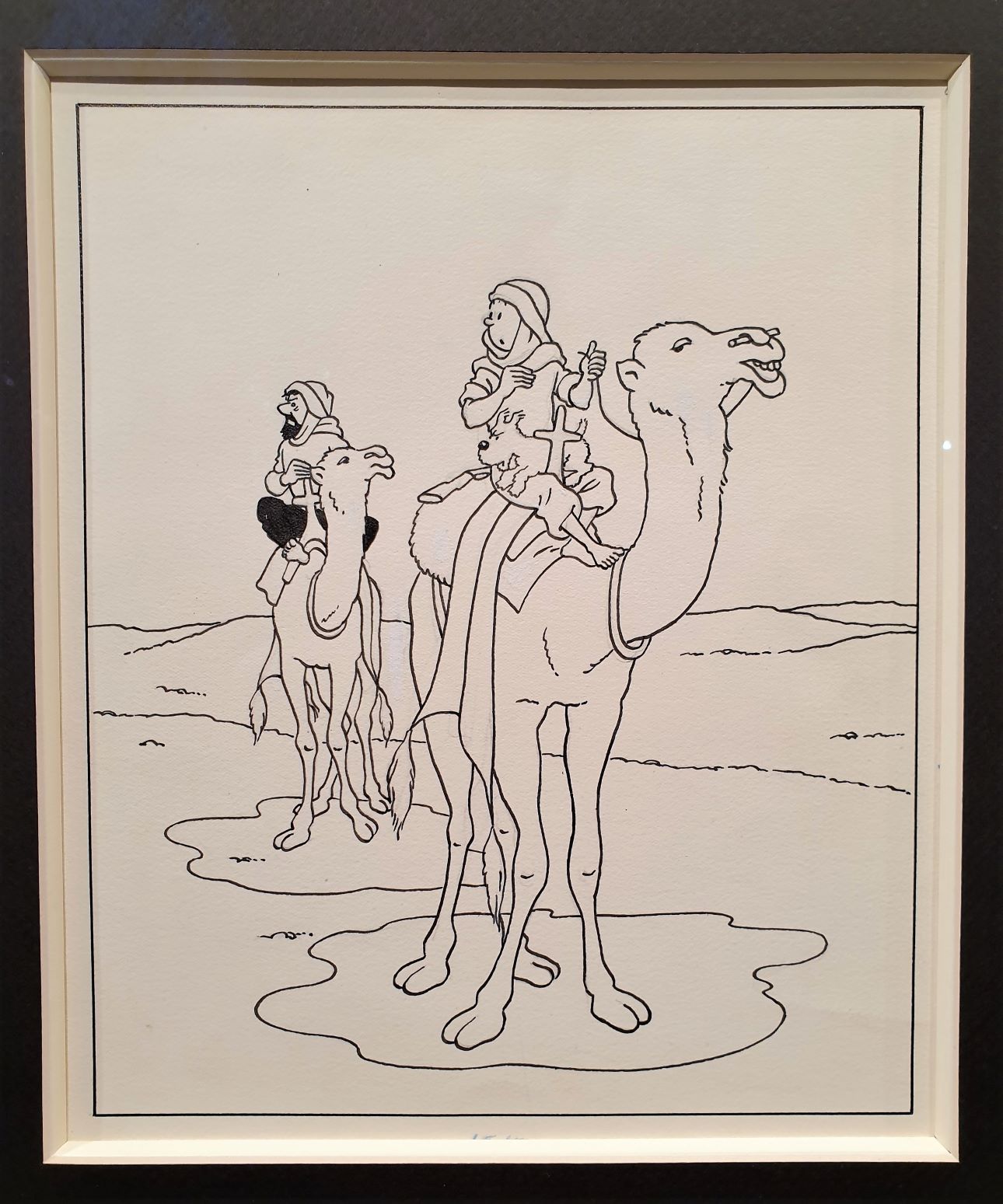 Trittico Tintin da 2 milioni di euro. Tre illustrazioni di Hergé (2 tavole degli anni quaranta, 1 anni sessanta) da perdersi nel deserto… (si segnala anche un bel Omaggio a Magritte con tanto di baffi, bombetta e ombrello del 1968 a 280 mila euro), da Belgian Fine Comic Strip Gallery