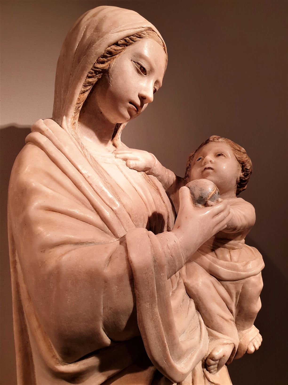 La delicatissima Madonna con Bambino, in stucco, della bottega di Ghiberti (1420-1430 ca), da Sandro Morelli