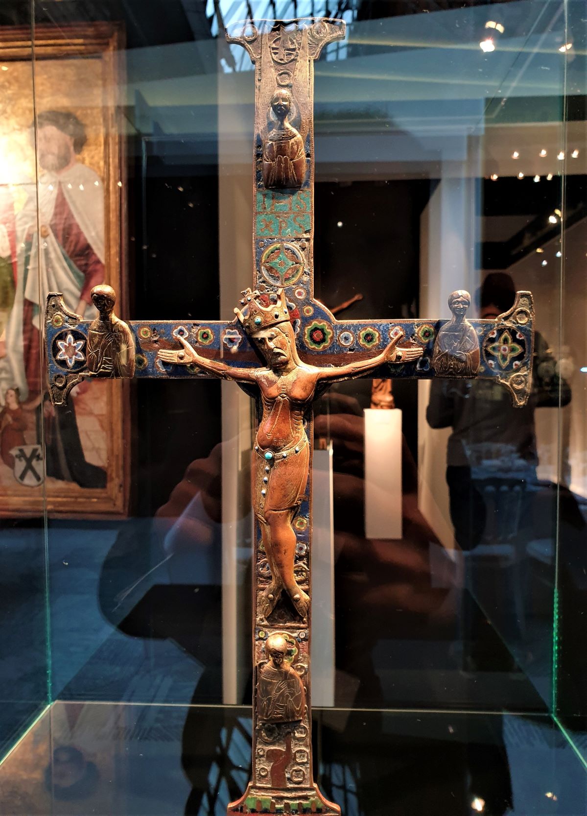 Croce di Limoges, 1220. Pregiato pezzo di rame dorato, impreziosito con smalti, gemme e cristalli di rocca. Da De Backker Medieval Art