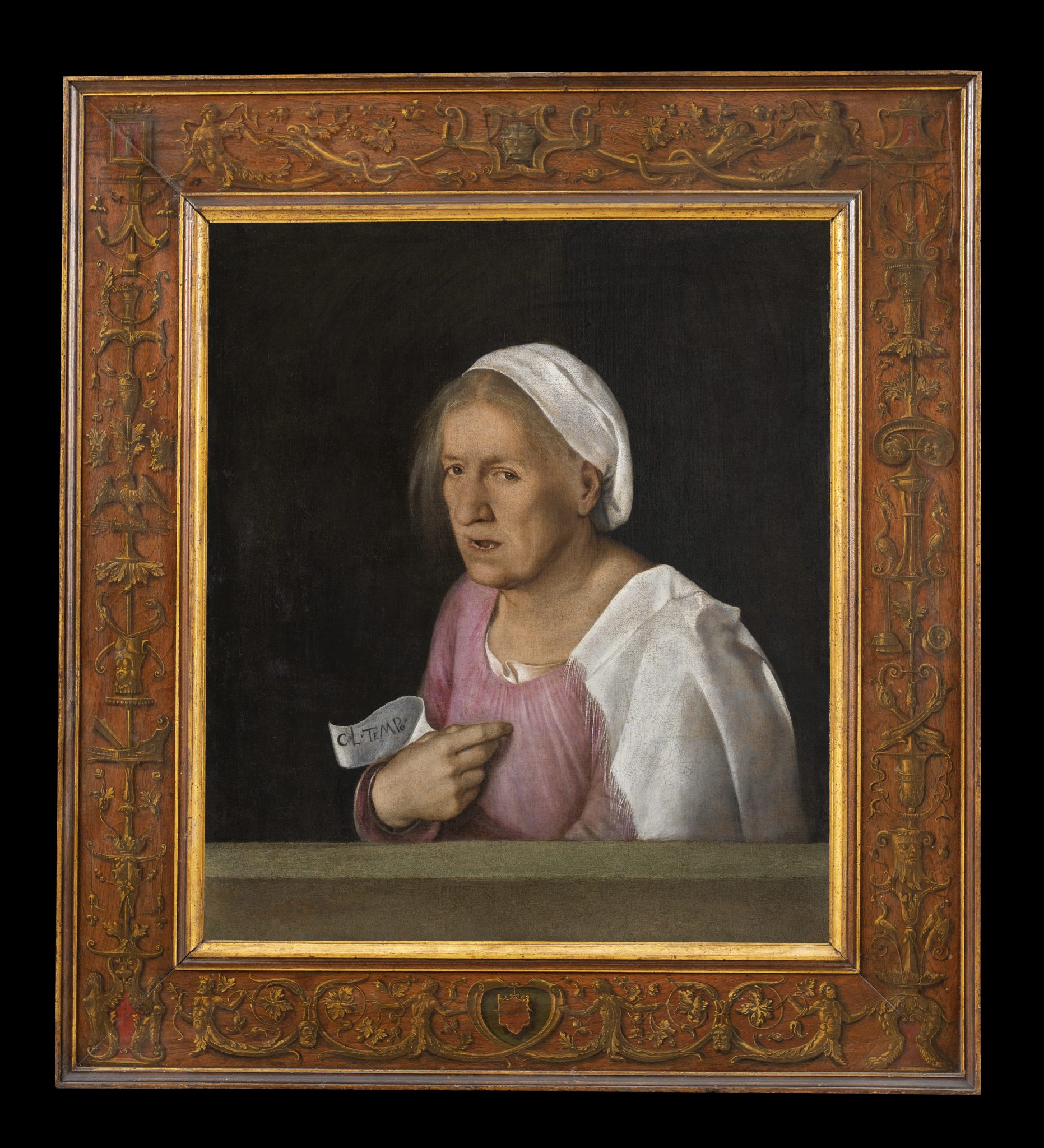 “In seguito al trattamento conservativo durato sette mesi torna visibile al pubblico nelle sue migliori condizioni di lettura estetica, una delle opere più enigmatiche del Cinquecento” dicono i curatori del restauro. Un soggetto, quello de ‘La Vecchia’, difficilmente classificabile: rappresentazione realistica della senescenza e allegoria del tempo che scorre, cui rimanda la scritta del cartiglio. Un capolavoro che trova la sua ispirazione nella ritrattistica di Leonardo, così come in Albrecht Dürer e nella pittura nordica.
