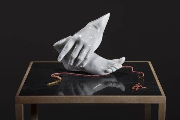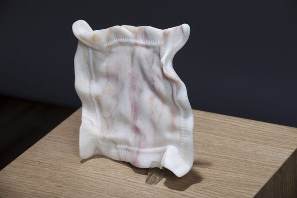 La personale prosegue con una seconda serie di lavori, appartenenti agli ultimi anni, tutti accomunati da un’estrema lavorazione della materia. Il marmo è sempre il medium prediletto ma questa volta le forme si assottigliano fino a diventare fragili fogli di carta, l’intenzione è quella di rivalorizzare, attraverso le caratteristiche durevoli del marmo, le qualità degli oggetti apparentemente scontati del nostro quotidiano. Questi divengono così contenitori di memorie, mezzi per ritrovare la bellezza originaria e incontaminata di un orizzonte che per abitudine non siamo più portati a osservare, ricercando nelle novità e nelle passioni totalizzanti la via d’uscita alla continua esigenza di riempire i nostri vuoti interiori.