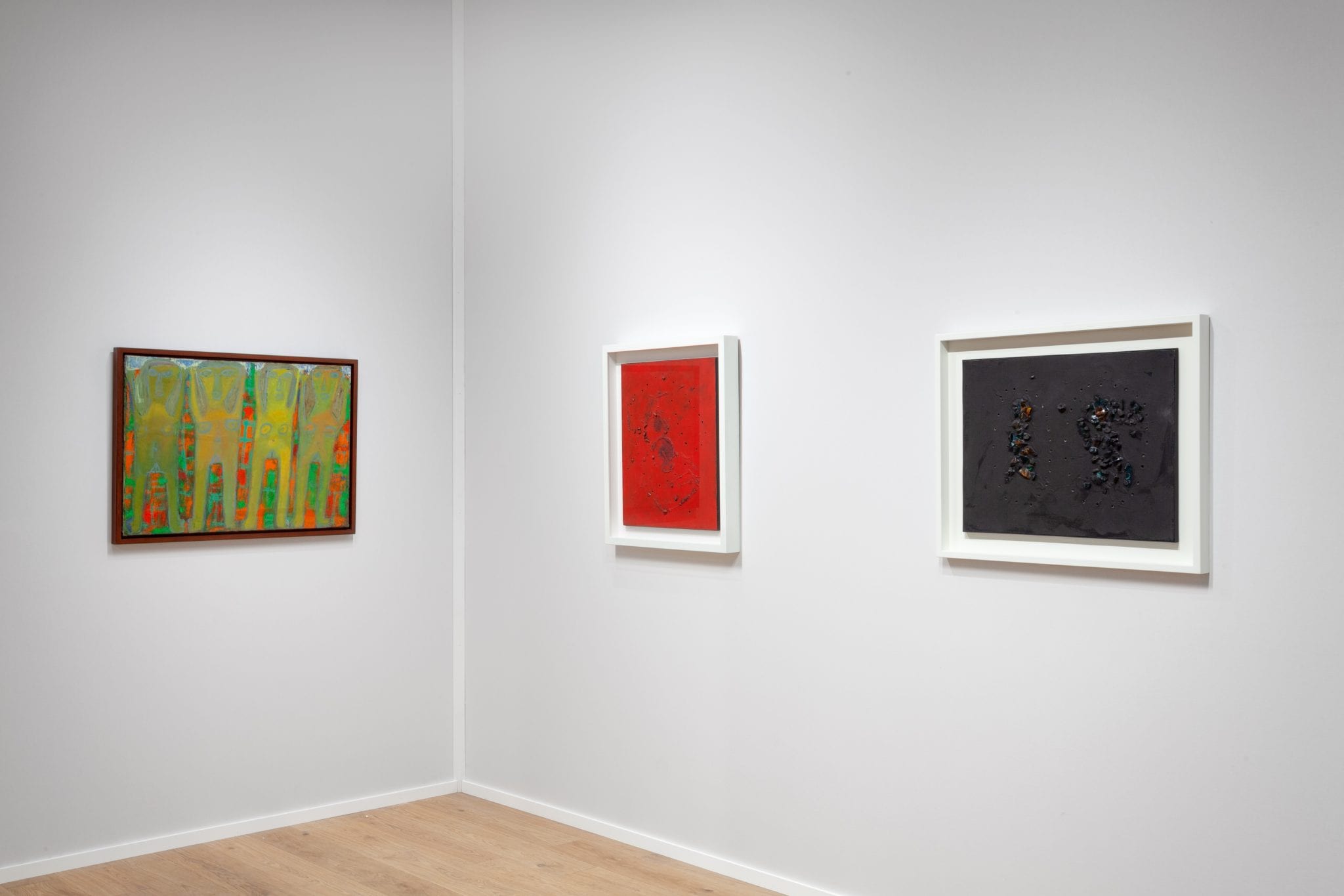 Tra tutti, spicca per quantità la figura di Lucio Fontana. Tra le opere centrali appare Concetto Spaziale, 1956: una tela rossa costellata di buchi e pezzi di vetro, un esempio perfetto dell’esplorazione dello spazio portata avanti dall’artista, realizzata in un momento significativo della sua ricerca che lo condurrà due anni dopo ai famosi tagli.