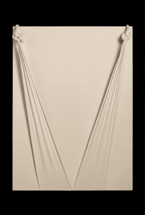 Nella seconda sezione della mostra ci immergiamo, tra colori, oggetti e immagini, nell’arte di Jorge Eduardo Eielson (Lima 1924 – Milano 2006), artista peruviano che arriva in Europa nel 1948. Vive tra Ginevra, Roma, Parigi per poi stabilirsi ufficialmente a Milano. Nonostante la chiamata/vocazione verso il continente europeo abbia permesso all’artista peruviano di captare influenze, stimoli e approcci all’arte (e alla vita) diversi, il legame con la sua terra è un elemento che ritorna costantemente nelle sue opere attraverso la ripresa di motivi preispanici peruviani. Per chi avrà il piacere/curiosità di vedere la mostra noterà come Jorge E. Eielson gioca anche con la materia rapportandola alla sua terra natia. Manipola, strappa, lacera e unisce gli abiti fino a giungere al nodo, simbolo per eccellenza della sua produzione artistica.