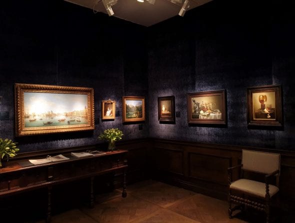Tappeto verticale di rose e fresie cascanti all’ingresso, distesa di moquette a rosoni stellati geometrico-stilizzati su tutto il pavimento espositivo. Terreno sommessamente soffice dove si sfalsano colonne cubiche compenetratesi tra loro, con tanto di orchidee e tulipani colanti verso terra, cornice perfetta per il passaggio di ostriche vaganti verso le bocche dei visitatori erranti. Atmosfera color salvia. Benvenuti a TEFAF 2019 in Maastricht. La regina delle fiere, con il pallino per l’antico, e l’ingresso sempre più netto (a gamba tesa) del contemporaneo (spesso fuori sede e contesto, ma così va il mercato), ritrova il suo primo appuntamento annuale -poi sarà il turno di New York Primavera e Autunno- nella storica roccaforte tra confini europei sulla Mosa, fino a domenica 24 marzo. E’ risaputo, se una galleria riesce a “entrare” al MECC (la sede di TEFAF) ha fatto bingo: vendite, relazioni, contatti e soprattutto palate di collezionisti, billionaire e direttori di musei, fondazioni e istituzioni da passare al setaccio per una decina di giorni. Visite certe e assicurate, tanto che gli stessi galleristi non riescono a trattenere (quasi mai qua in fiera) la soddisfazione, come solitamente sono maestri fare. Un pubblico, quindi, assolutamente serio, consapevole e interessato che ha fame di capolavori, alla ricerca di opere di assoluta qualità. Senza adoperarsi in passerelle conciati da sfilata, senza distrazioni mondane o tipici contorni contemporanei festaioli post fiera o fiera off. Chi viene qua è certo di visitare un “museo”, una fiera di livello museale. Ed è quello che trova, sempre. Come testimonia tutti gli anni la fiera olandese, giunta alla 32esima edizione. Nei precedenti pezzi abbiamo segnalato capolavori, vendite e pubblicato report introduttivi, ora buttiamoci tra i 279 espositori alla ricerca degli stand assolutamente da non perdere, quelli che coniugano una preziosa ricerca curatoriale all’eleganza dell’allestimento e alla qualità delle opere. Ne segnaliamo una quindicina trovate tra le sezioni di Dipinti Antichi e Moderno-Contemporaneo.