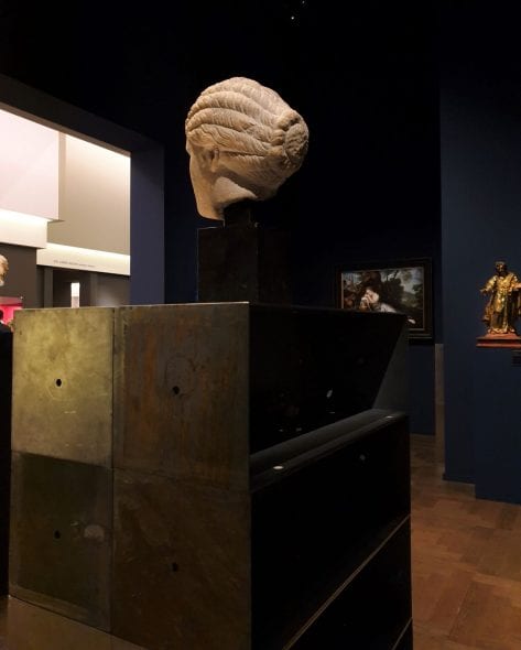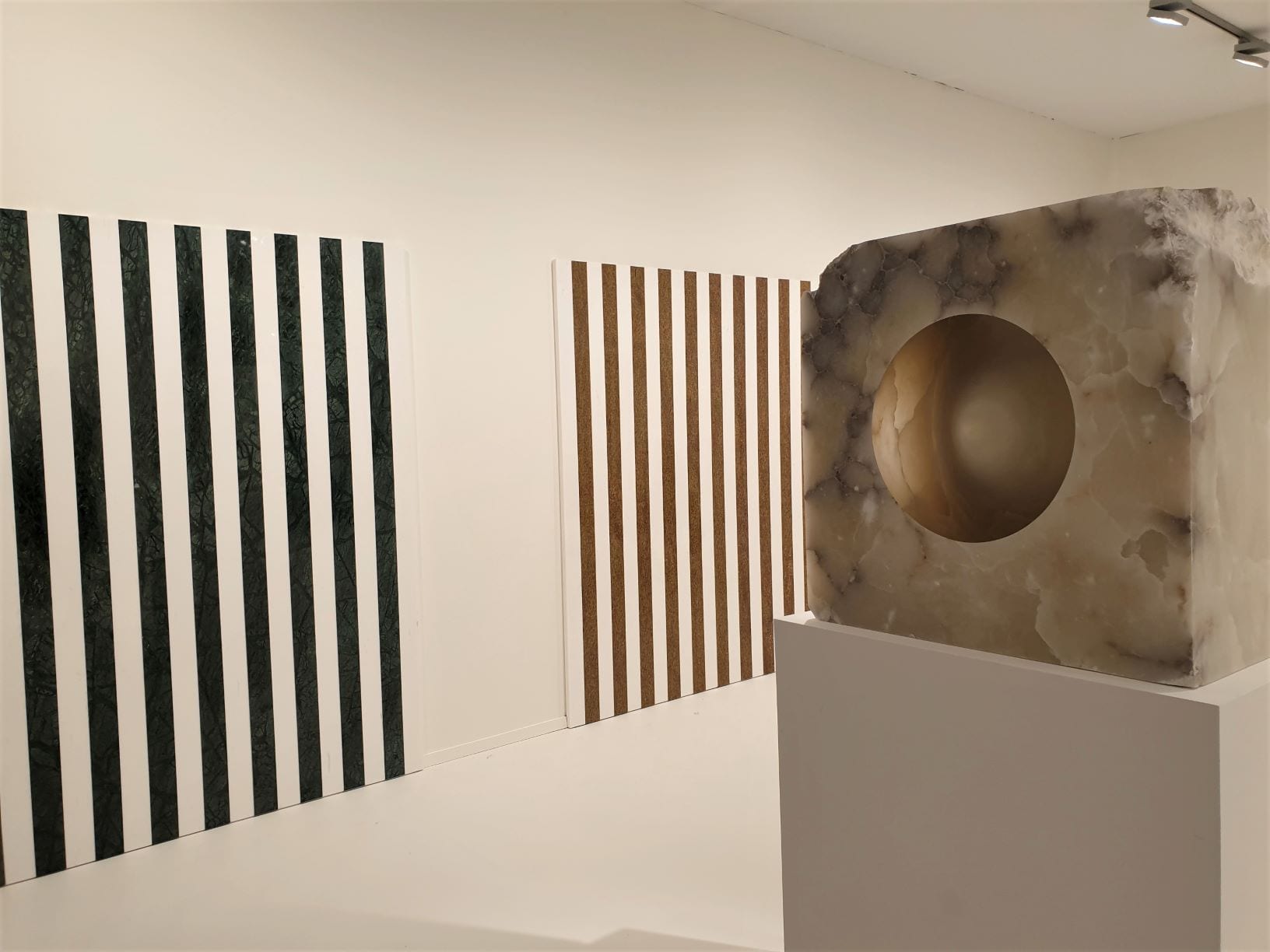Luce soffusa che bagna la doppia stanza, il Seicento (tutto, da Napoli alla Spagna, da Vitale a Zurbaran, fino alle fiandre di Jordaens e Van Dyck) in scena da Colnaghi, intervallato alla statuaria classica (e a una incredibile testa Maya scolpita nel calcare) sorretta da poliedri grezzi di superbo design industriale.