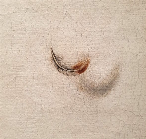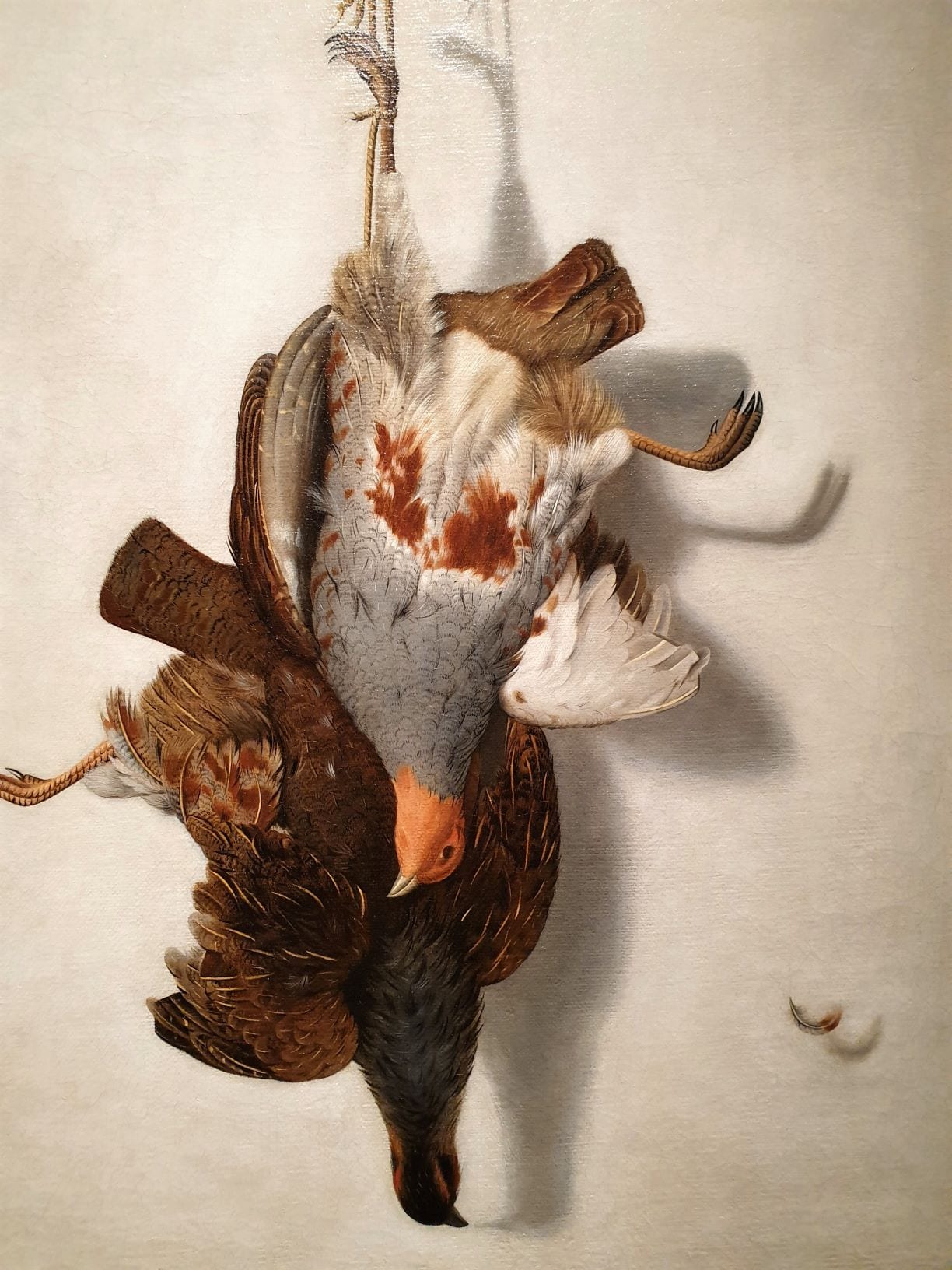 Raccolta l’accoglienza nordica di un smarrito nudo orante nello studio dell’artista di Anders Zorn, l’interno si riscalda con la languida innocenza di Greuze e la dolcezza della Sacra Famiglia di Strozzi. Assolutamente da non mancare, l’imponente Davide con la testa di Golia di Domenico Fetti e la coppia di pernici inglesi di Biltius (con il leggerissimo dettaglio nella foto qui sotto).