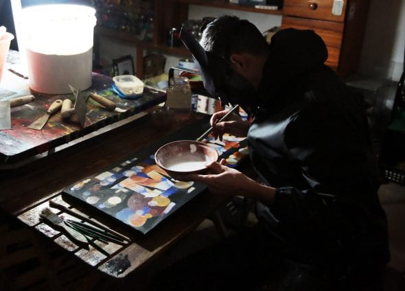 Innovatore della tecnica e della poetica, Manu Invisible da una nuova vita alla storia dell’arte attraverso le sue bombolette. L’artista scava alle origini della pittura e fa ritorno alle sue forme ancestrali. La tecnica dell’affresco si fonde con gli spray colorati, la malta con il nerofumo. Il risultato è un linguaggio del tutto innovativo, mai visto prima, che permette al writer di spaziare dalle grandi superfici urbane a frammenti affrescati.
