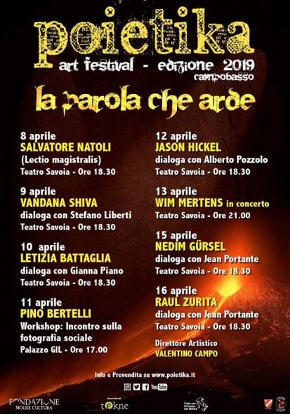 Dall’8 aprile Salvatore Natoli, Vandana Shiva, Jason Hickel, Wim Mertens, Pino Bertelli, Raul Zurita, Nedim Gursel e Letizia Battaglia al Poietika Art Festival di Campobasso