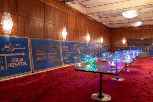 “Ho provato ad immaginare se questi muri potessero parlare, cosa direbbero, cosa ci racconterebbero. Ho trovato le maschere antigas della Guerra del Golfo ancora nelle loro scatole originali. C’è un sacco di storia da raccontare “, ha detto bin Fahad. “Ho usato lo spazio per mostrare anche molti dei lampadari che ho raccolto da vecchi palazzi e finestre che ho raccolto in giro nel Regno. In tal modo, sto dimostrando quanto sia unito il Regno. Anche se sono diversi nello stile e nel motivo, li ho uniti in un’unica installazione d’arte come una sola unità.”