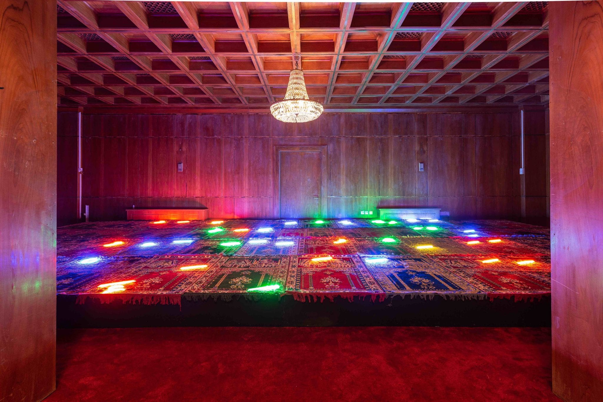 “Ho provato ad immaginare se questi muri potessero parlare, cosa direbbero, cosa ci racconterebbero. Ho trovato le maschere antigas della Guerra del Golfo ancora nelle loro scatole originali. C’è un sacco di storia da raccontare “, ha detto bin Fahad. “Ho usato lo spazio per mostrare anche molti dei lampadari che ho raccolto da vecchi palazzi e finestre che ho raccolto in giro nel Regno. In tal modo, sto dimostrando quanto sia unito il Regno. Anche se sono diversi nello stile e nel motivo, li ho uniti in un’unica installazione d’arte come una sola unità.”