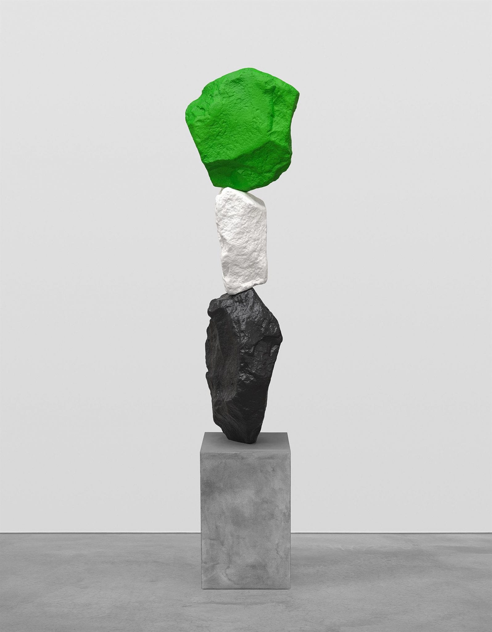 Ad aprire la sezione è l’opera Alfabeti dell’artista italiano Remo Salvadori, che rappresenta una metamorfosi alchemica: i setti metalli – piombo, stagno, ferro, rame, mercurio, argento, oro – sono forgiati per cambiare la natura e il modo di manifestarsi. Segue uno straordinario lavoro di Harold Ancart, raffigurante un iceberg. L’artista belga – invitato recentemente al Centre Pompidou di Metz per realizzare una pittura monumentale site specific – ha iniziato a dipingere iceberg in risposta alle estreme condizioni climatiche invernali che hanno interessato New York, la città dove vive e lavora. Ancart ritrae altri soggetti naturali che invitano alla contemplazione, come orizzonti, nuvole, fiori o fiamme, rappresentati in mostra dall’opera Untitled. Accanto ad Ancart sono esposti, tra gli altri, due dipinti geometrici, astratti e dai forti contrasti cromatici di Günther Förg, in cui l’artista ricompone il motivo naturale tramite segni colorati; l’opera Tusche, una foresta in negativo dell’artista svizzero Ugo Rondinone, in dialogo con due sue sculture totemiche della serie Mountains (Blue Yellow Red Mountain e Black White Green Mountain) poste al centro della sala. L’artista elvetico, da sempre interessato all’interazione tra arte – uomo – natura, per la realizzazione di queste sculture prende spunto dalle guglie naturali comuni in alcune zone desertiche e dall’arte meditativa del bilanciamento delle pietre; mentre i colori fluorescenti derivano da una classificazione data dall’artista in rapporto ai luoghi da cui sono tratti i singoli elementi.