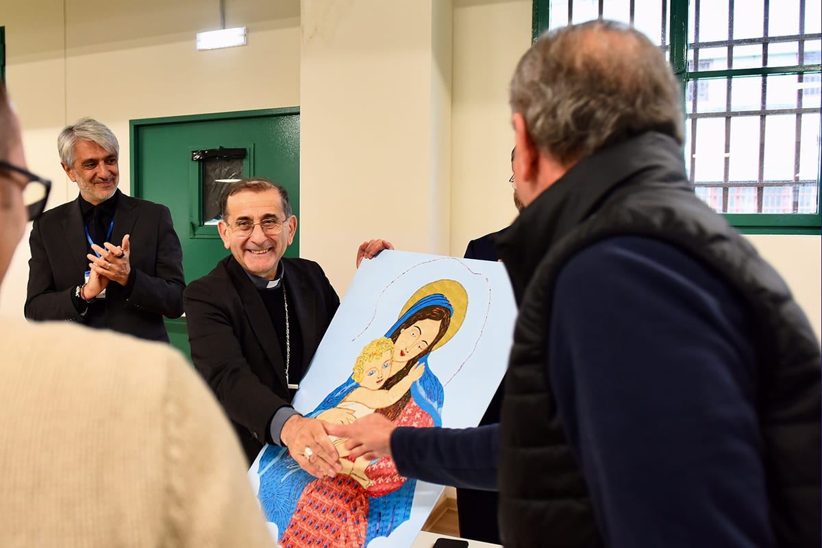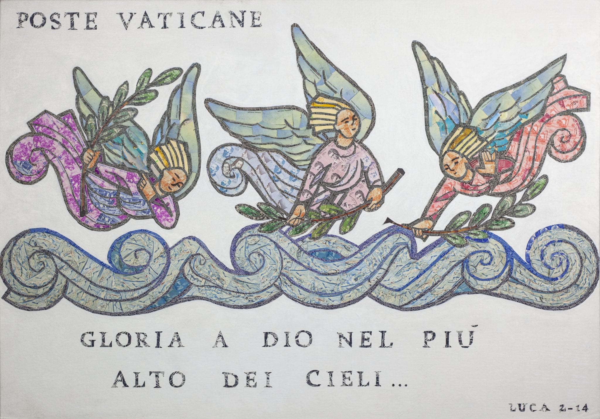 Ispirati alla tradizione si presentano invece gli elaborati realizzati da Sigismondo Strisciuglio nella Casa di reclusione di Milano Opera, come la dolce “Madonna col Bambino”, tempo fa donata all’arcivescovo di Milano, Mario Delpini che non solo l’ha apprezzata ma, dopo essersi soffermato dinanzi ad altre opere analoghe, ha avuto parole di elogio e di compiacimento per l’attività nel suo complesso. Non meno pregevoli le versioni mosaico di due emissioni natalizie del Vaticano, quella del 1988 e quella, davvero superba, del 2015 presa, questa ultima, da una preziosa miniatura di autore ignoto ma di grande levatura, ripresa dal Codice Urbinate latino 239 (1477-1478), conservato presso la Biblioteca Apostolica Vaticana.