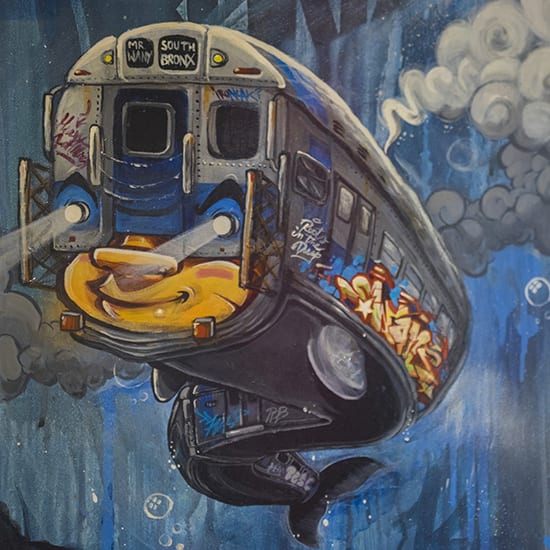 Questa è un’opera nuova perché avendo fatto queste 2 date ho venduto diverse opere in queste mostre e quest’ultima si aggiungerà a questa mostra/progetto intitolato “Ephemeral Beauty” che è una mostra tributo a i Graffiti Writers degli anni ‘70 e ‘80 di New York. Parla un po’ della storia di come nasce il graffiti writing. Studio un po’ lo stile, tutti gli stili che sono stati inventati perché, il writing a differenza della Street art, è scrittura e se ci pensi la scrittura è l’unica cosa che ci differenzia dagli animali. E’ un po’ lo specchio dell’anima di chi la fa.
