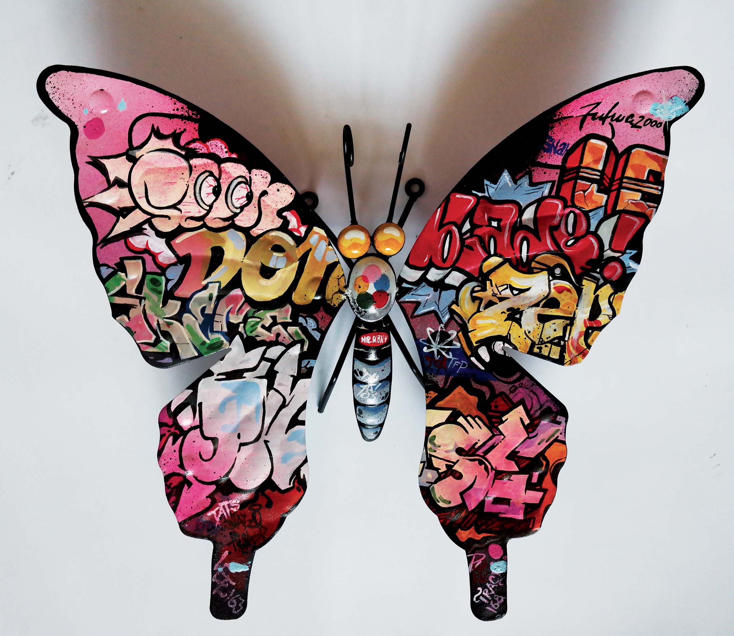 La mia arte è un mix, un “fusion” di tante esperienze. Io inizio a disegnare da bambino guardando i cartoni animati giapponesi. Poi a 12 anni inizio a fare Style writing con utilizzo dei personaggi. Negli anni ’90 vado a vivere a Roma ed esco con il massimo dei voti alla scuola di Illustrazione e fumetto e divento quasi subito conosciuto a metà anni ’90 per i personaggi che disegno. Nei primi del 2000 inizio a fare, inconsapevolmente, Street art perché inizio a dipingere materassi, alberi, bici, tutto quello che mi passa per la testa e inizio a fare le prime mostre. Dal 2001 al 2007 inizio a lavorare come grafico pubblicitario a Bologna quindi mi trovo a lavorare con i materiali originali Giapponesi.