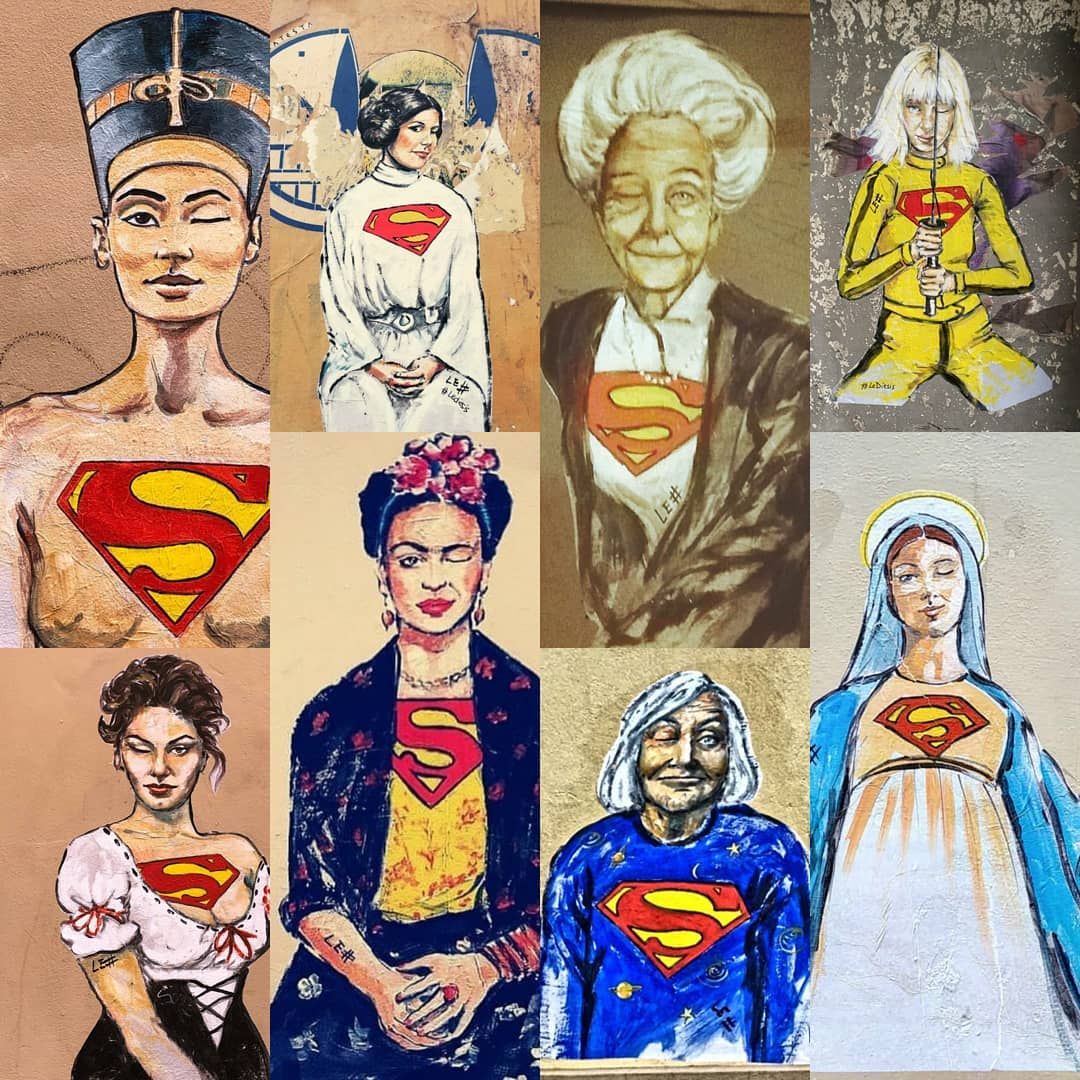 Dopo i personaggi di Blub, ci sono gli omini di Exit Enter, buffi e delicati, che corrono dietro ai loro palloncini rossi, raccontando una storia infinita di emozioni e segreti che si sviluppa sui muri della città: «L’obiettivo del mio personaggio è quello di entrare in contatto con le persone, accendendo in loro un pensiero, un sentimento, una domanda. Dipingo molto e tutti i giorni, per me è una necessità. Purtroppo senza un pubblico, qualunque opera d’arte è fine a se stessa ed è proprio per questo che ho iniziato a dipingere in strada, per far vivere i miei lavori. Dopo pochi mesi mi sono reso conto di avere un pubblico e allora ho deciso di progettare un percorso e cercare risposte su ciò che faccio». Un artista anonimo, sotto la sigla di Lediesis, sta invece realizzando sui muri di Firenze otto ritratti di superdonne, da Sophia Loren a Frida Kahlo, da Rita Levi Montalcini a Margherkita Hack, da Nefertiti alla Madonna. Certo, non sono tutte rose e fiori.