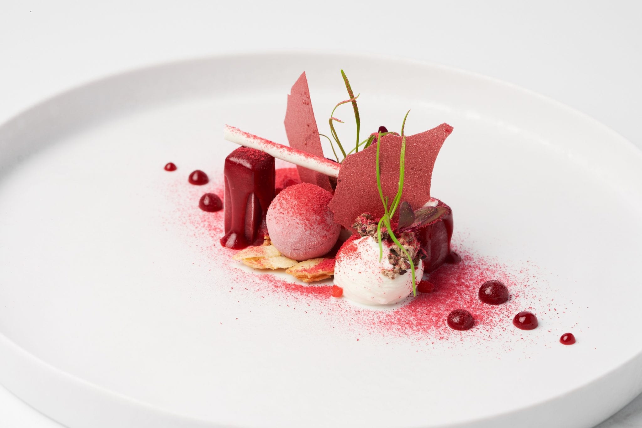 Negli appropriati calici, sempre perfetto il servizio, vi è sapiente avvicendamento di vini campani. Si comincia con il Trentapioli di Salvatore Martusciello per poi proseguire con il Fiorduva Cosa d’Amalfi di Marisa Cuomo fino a virare al Greco di Tufo DOCG di Luigi Moio by Quintodecimo che accompagna gagliardamente la portata di pesce costituita da scampo appena arrosto su crema di finocchi all’anice. A compimento di tale memorabile cena, trionfo di dessert con ruolo di primo piano ad una lodevole “Bufala e il lampone”, giuoco di texture diverse consistenze tra la frutta ed il formaggio.