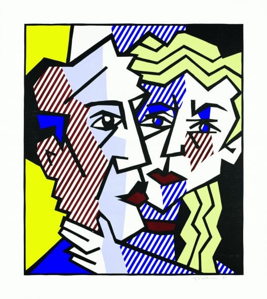 Una personale grammatica visiva composta di spessi contorni neri, forme sintetiche e colori accessi. Possiamo sintetizzare così lo stile che lo ha reso uno dei maggiori esponenti della Pop Art americana. Una soluzione formale apparentemente semplice che però, sublimata dall’impiego del reticolo retinico al di sotto dell’immagine (estrapolato dal mondo della stampa), lo ha reso immediatamente e senza dubbio alcuno riconoscibile. Davanti a una o più figure senza contesto, dal fascino hollywoodiano, che magari sussurrano frasi bizzarre raccolte in vignette, rese con piatta ma brillante immediatezza, l’artista che ci balza è in mente è uno solo: Roy Lichtenstein.