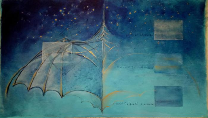Alla Sala Valentini di Via Ricasoli sarà esposta una selezione delle opere, nelle quali, nota il curatore Niccolò Lucarelli “con l’umiltà del vero artista, Veneziano ha scelto di lasciar parlare Leonardo, ponendo in primo piano la sua straordinaria opera tecnica e scientifica, arricchendola di quell’afflato artistico che accosta il pensiero alla poesia. Il firmamento infinito è la quinta d’elezione dove parola scritta e disegno tecnico, esaltati dai colori concettuali e onirici insieme, si sublimano nella levità poetica dell’arte: pilastri, arcate, ruote, cannoni, dighe, congegni meccanici, formule matematiche, danzano fra stelle, pianeti e comete, avvolti nell’immensità siderale che è metafora sia della vastità potenziale del sapere umano, sia di quell’ignoto che ancora sfugge alla conoscenza, e che Leonardo mai ebbe timore d’indagare e rischiarare. La pittura di Veneziano è intrisa di Realismo Magico, grazie ai suoi colori brillanti e delicati insieme ammanta di meraviglia le intuizioni di Leonardo, e sfiora il Simbolismo nel tratteggiare aree visioni di volti e marchingegni; metafora della levità celeste dell’ingegno umano, quando messo al servizio del progresso civile”.