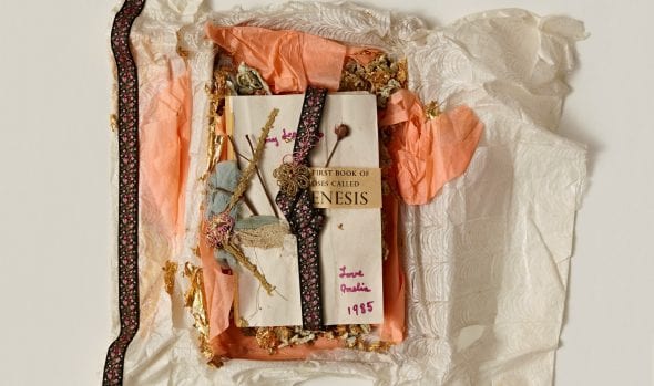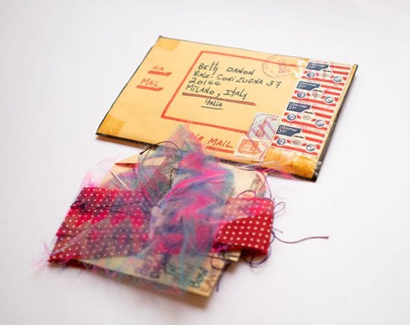 L’essenza dell’opera di Etlinger si può trovare nelle lettere esposte a Brescia, accompagnate dalle buste di imballaggio originali con scritto sopra “please do not bend” (per favore non piegare). Una raccomandazione non casuale se si considera la fragilità del contenuto. Quelli che l’artista inviava non erano semplici biglietti o cartoline, ma delicatissimi manufatti da scartare con attenzione. Nastri, tessuti, scampoli di seta e fiori secchi costituiscono l’involucro dentro il quale è avvolta la lettera, che da comunicazione scritta di notizie o pensieri diventa l’oggetto stesso del messaggio. Una poesia spedita ad un’amica assume così il valore di una piccola opera d’arte da guardare, toccare, aprire e infine leggere, che rivive nella totalità di queste azioni ogni volta che il destinatario decida di riaprirla e di riappropriarsene.