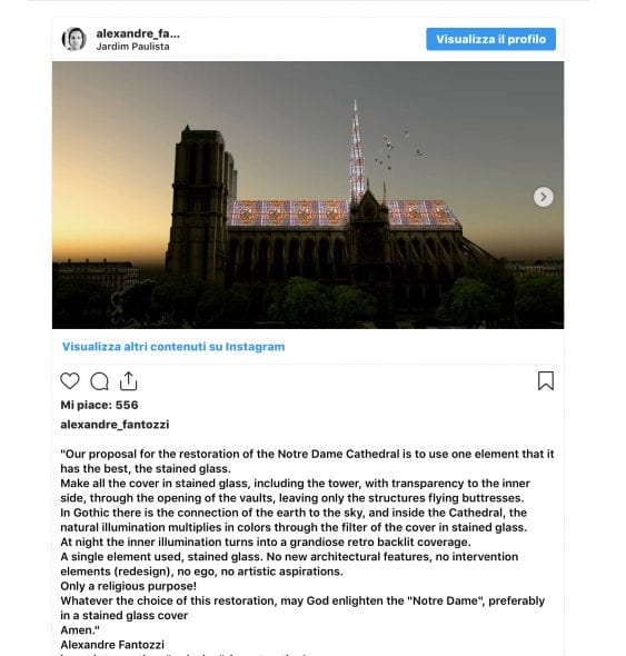 In questa fase caotica e di incertezza non mancano le polemiche. Da chi vede nell’incendio una sorta di complotto di non si sa quali poteri forti interessati a creare caos, chi critica lo slancio generoso dei vari miliardari del globo pronti a mettere a disposizione somme ingenti per la ricostruzione e che non hanno dimostrato la stessa generosità per altre cause umanitarie e chi pensa che alla fine a spuntarla in questo concorso internazionale per la progettazione non sarà necessariamente il progetto migliore ma quello che riuscirà a catalizzare il maggior consenso magari attraverso una bella cordata di sponsor alle spalle. Noi preferiamo essere ottimisti e pensare che il progetto vincitore avrà il maggior consenso semplicemente perché considerato il più adatto alla grande sfida di lasciare un messaggio positivo alle generazioni successive.