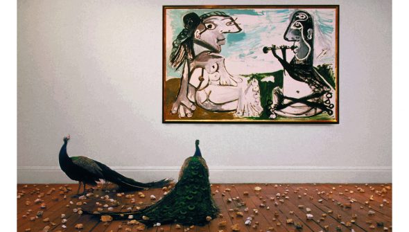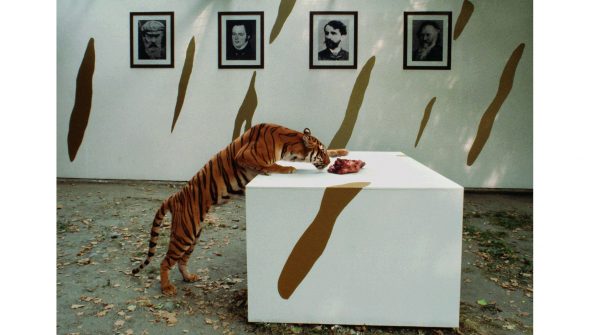 Questa serie introduce altri temi cari all’artista, la continua commistione tra natura e artificio (frutta, oggetti di uso comune) il ricorrere a personaggi della Storia per lui particolarmente significativi, da onorare, o stigmatizzare, esprimendo in questo modo giudizi etici ed estetici sulla Cultura, sull’Arte e il ruolo dell’artista. La seconda selezione di lavori è dedicata invece ad un altro importante corpus nella produzione dell’artista che consiste in installazioni che creano incontri stranianti tra animali selvatici ed opere d’arte. Dialoghi silenziosi in cui la natura e la cultura si fronteggiano in una dimensione sospesa.
