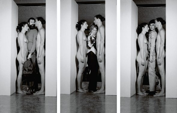 Marina Abramović (fino al 21 luglio 2019) sarà presente in mostra con il video originale della performance realizzata dell’artista insieme a Ulay, Imponderabilia, il 2 giugno 1977 presso la Galleria Comunale d’Arte Moderna di Bologna, nell’ambito della Settimana Internazionale della Performance. Una delle esibizioni performative più celebri della storia dell’arte. I corpi nudi di Marina e del compagno Ulay, uno di fronte all’altra, sono solo apparentemente i protagonisti della performance. In realtà, Imponderabilia, non mette a nudo il corpo dei due artisti ma le reazioni, imponderabili, dei visitatori che devono passare tra loro nel piccolo spazio a disposizione e decidere ‘chi affrontare’. Il corpo sinuoso e tutto sommato rassicurante di Marina o quello più ossuto di Ulay? Nel video sono proprio queste reazioni la vera opera d’arte , dove a essere imbarazzati sono i visitatori e non gli unici due corpi nudi. E la velocità del passaggio, la scelta da che parte passare, l’espressione del volto, riescono a raccontare tanta intimità di queste persone a noi sconosciute.