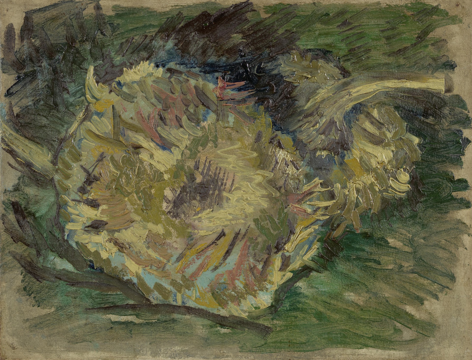 Sono undici le serie di girasoli giunte a noi, ma probabilmente erano di più, a giudicare da alcune lettere scritte al fratello Theo, in cui aveva parlato entusiasta di almeno un altro o due dipinti. Di quelle undici serie, 4 sono stati fatti a Parigi e gli altri sette ad Arles, nella Casa gialla. I girasoli di Parigi si distinguono facilmente perché sono tutti stesi a terra, appassiti o recisi. Ma anche così conservano una luce propria che li rende oggetti simbolici, metafora della vitalità della natura. I girasoli permettono a Van Gogh l’uso dell’intero spettro del giallo, il suo colore preferito, grazie a una tecnica particolare: per realizzare queste serie, Van Gogh aveva posto sulla tela uno strato di colore sopra l’altro, senza aspettare che si asciugasse. Così la pittura è molto più densa e i colori stessi sono più decisi. I fiori sono disordinati, quasi spettinati, a rispecchiare in fondo l’animo più profondo dell’artista, che li tratteggia attraverso tocchi morbidi. I girasoli sembrano animarsi, perché in qualche modo Van Gogh si trasfigura in loro e nella loro emanazione, umana e mortale, che anche quando si piega e appassisce, conserva in sé la forza che gli ha dato il sole.