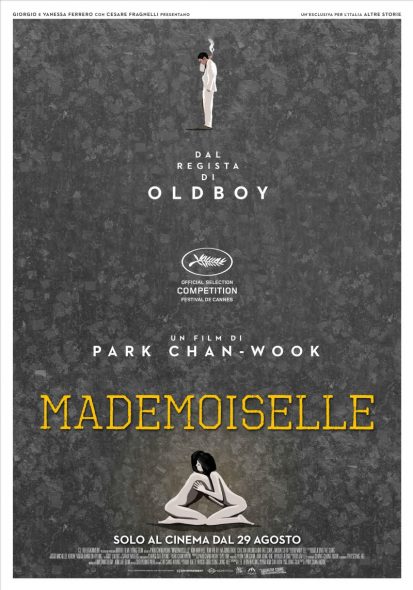 È sempre brutta abitudine presentare un film di un qualsivoglia regista in attività come “l’ultimo” (l’ultimo film di Tarantino, l’ultimo film di Woody Allen, etc), sarebbe buona creanza dire “il nuovo film di”, per suonare quantomeno meno ferali. In questo caso però parlare di “nuovo film” è davvero impossibile. Con i tempi tutti bizzarri della nostra distribuzione e con un poster molto brutto, The Handmaiden, “l’ultimo” film di Park Chan-wook (Old Boy, Lady Vendetta) arriva al cinema per fine agosto, titolo italiano: Mademoiselle.