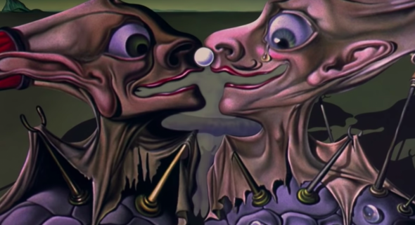 Ed effettivamente il gesto disperato si rivela liberatorio: la fanciulla si lascia andare ad una danza sensuale e spensierata, tanto che per la prima volta il destino cede. La statua di Crono si crepa e lascia fuggire dalle briglie del fato la figura di uomo. Se i suoi tratti rimangono misteriosi, la sua intenzione di raggiungere l’amata è chiaro, nonostante un uccello picchietti sull’orologio al polso come a ricordargli la caducità della sua condizione. Un intenso gioco di sguardi, un passo reciproco uno verso l’altro e l’incanto naufraga nelle sabbie mobili del deserto che si ritrae lasciando emergere una cinta muraria che racchiude l’uomo e separa gli amanti. La disperazione della donna si trasforma allora in un piccolo stormo di rondini che raggiunge la figura maschile e lo conduce fuori dalla prigione increspando la sorte. Una volta uscito, l’uomo finalmente si svela rivelandosi come un giocatore di baseball (forse l’elemento più disneyano, e fuori luogo, del cortometraggio). Qui la ragazza si costruisce dall’accostamento di due volti di profilo, contorti e deformi (forse proprio quelli di Dalì e Walt Disney), e sotto gli occhi increduli del giocatore si tramuta in una pallina da baseball che lui può colpire con la mazza, scappando insieme a lei lontano da tutto.