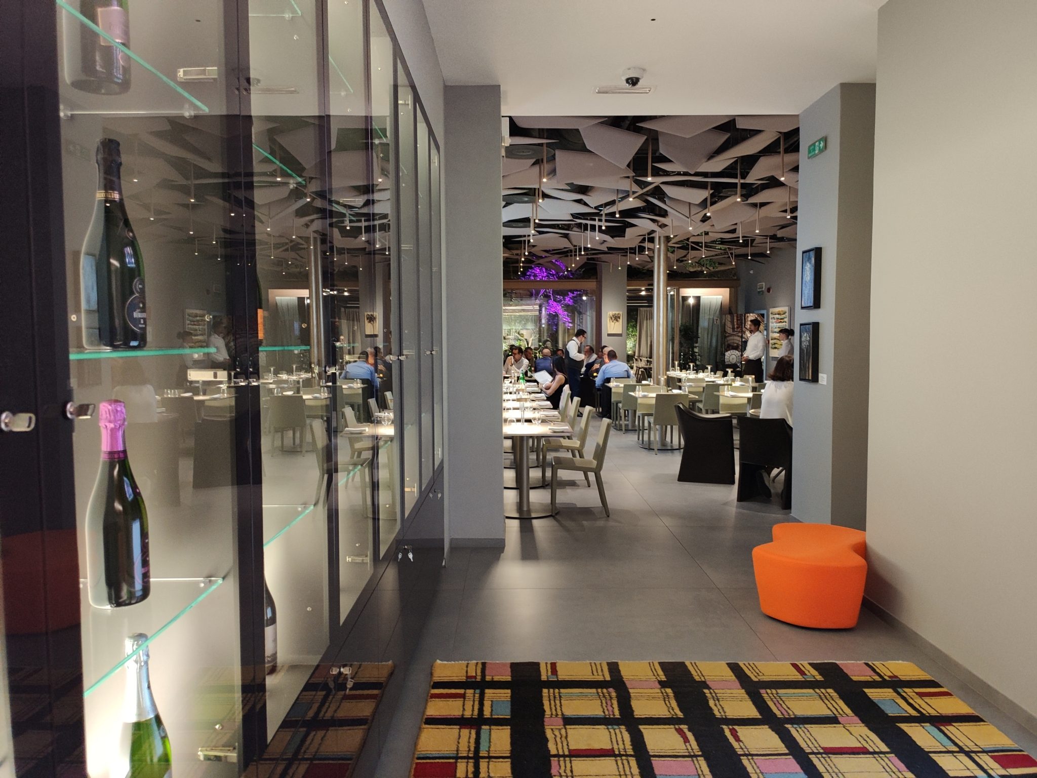 Il terzo attore della serata è stato il Saffron, vale a dire Beefeater London Dry, sciroppo allo zafferano, limone, spumante TrentoDOC: qualcosa di molto più classico, un omaggio dovuto alla città del risotto, tanto per mettersi tranquillamente al fianco delle Linguine Monograno Felicetti all’aglio nero, cozze e peperoncino: ma senza strafare, perché tutta una cena con i fuochi pirotecnici poteva risultare estranea all’abituale concretezza del milanese.
