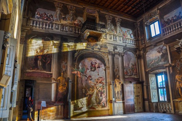 Cuore pulsante di Cesano Maderno, Palazzo Arese Borromeo è uno vero e proprio scrigno di tesori. Trasformata da modesta residenza di campagna a sontuoso palazzo per volere del conte Bartolomeo III Arese, si presenta con una struttura esterna maestosa ma severa, che poco lascia presagire della ricchezza decorativa degli interni, riportati recentemente all’antico splendore attraverso minuziosi restauri. 33 ambienti affrescati, opera di artisti del classicismo milanese tra cui Ercole Procaccini il Giovane, Giovanni Ghisolfi e Giuseppe Nuvolone.