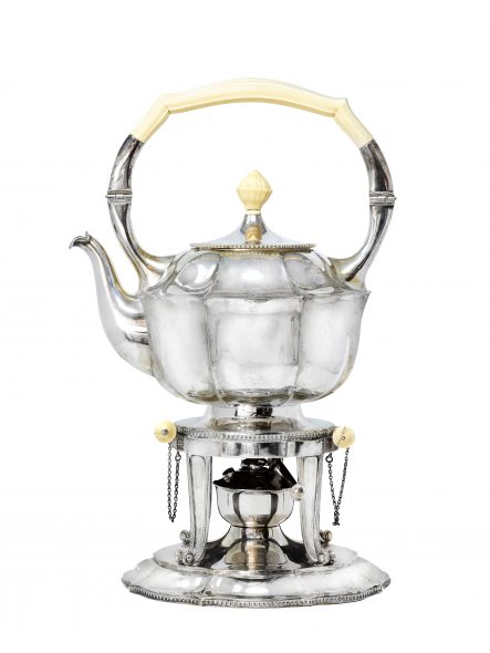Non mancano una serie di interessanti lotti di fine argenteria, tra i quali sei vassoi firmati Cusi, un somavar con manico in avorio, due decanter Cartier e tre vasi firmati Venini della collezione The Desert prodotta in serie limitata.