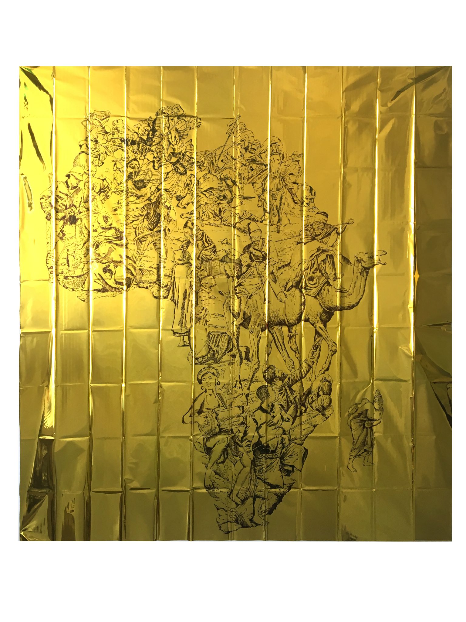 Lavorando sulla scelta delle opere si sono delineate diverse declinazioni dell’utopia. Confini, migrazioni, fugacità dell’immagini, ridefinizione dell’identità sono tutti temi sui quali riflettere in una società, come la nostra, in piena ridefinizione. Delphine Valli sintetizza l’idea di confine e ci fa riflettere sulle implicazioni politiche di una semplice linea. Francesco Arena, tracciando la distanza tra Sarajevo e la Puglia con degli oggetti utilizzati nel suo quotidiano suggerisce un altro modo di percepire la distanza. Le migrazioni sono un tema trasversale. I confini si allargano, Lo sky walker di Pietro Ruffo è un’allegoria poetica della ricerca di spazi nuovi da abitare. I rimandi storici presenti nel suo lavoro ci ricordano che l’impulso a cercare nuove terre è sempre esistito. Nella stessa direzione l’opera di Félicie d’Estienne d’Orves, una scultura collegata tramite satellite con marte, sposta l’orizzonte verso territori extra-terrestri. Sono sogni d’esplorazione di nuovi spazi, desideri di connessione con il cosmo. E’ molto emozionante vedere la scultura che si illumina nel momento esatto in cui sorge il sole su Marte. Non ci pensiamo mai, ma il fuso orario non riguarda solo il nostro pianeta. Noi guardavamo una tabella che ci indicava le ore di jet-leg tra noi e lo spazio per poter ammirare, sulla fragile scultura in cartone, la luce dell’alba su questo pianeta! Anche le opere di Jean Bedez (disegni) e Maud Maffei (pittura digitale) mostrano delle nuove cosmologie a cavallo tra passato e futuro.