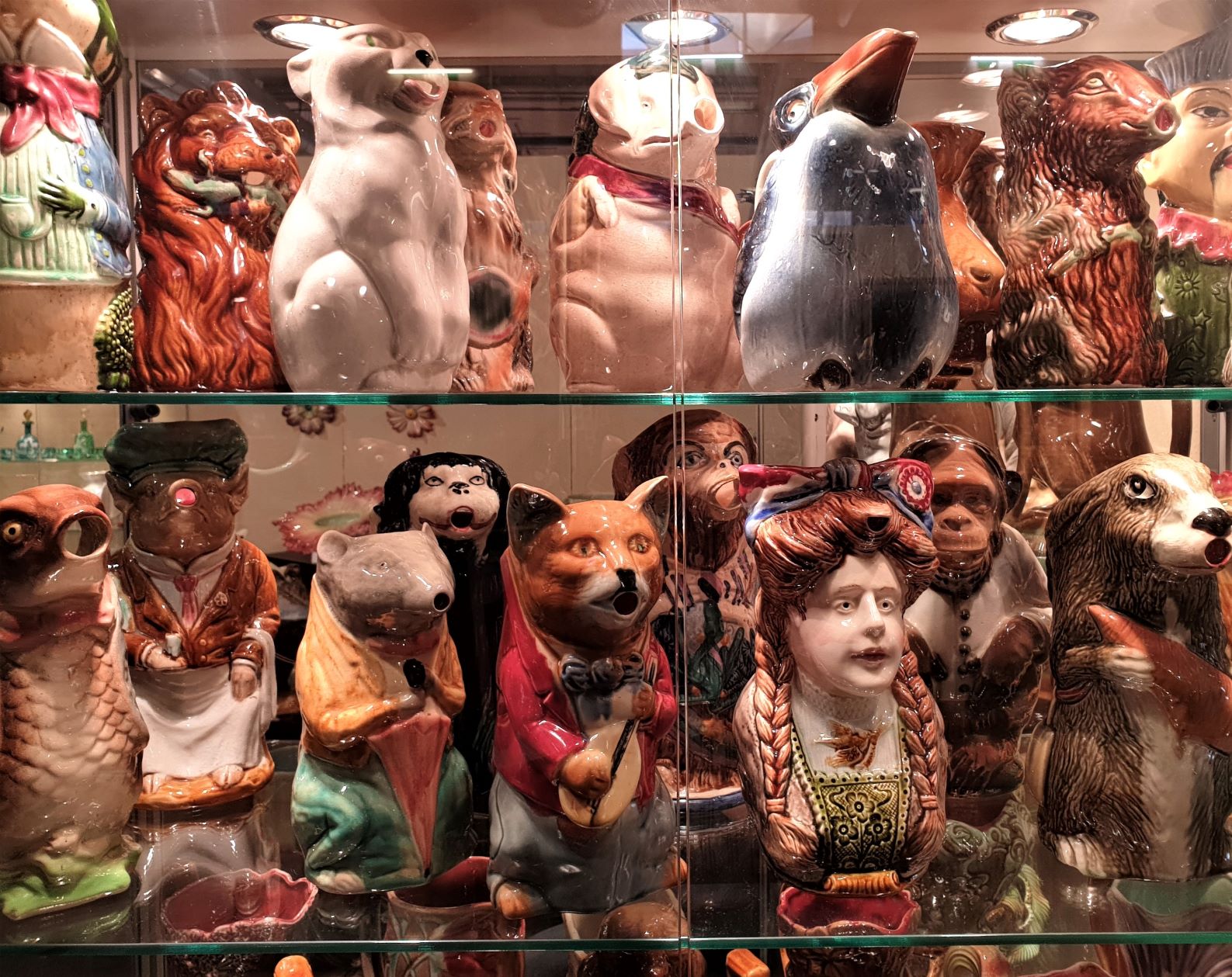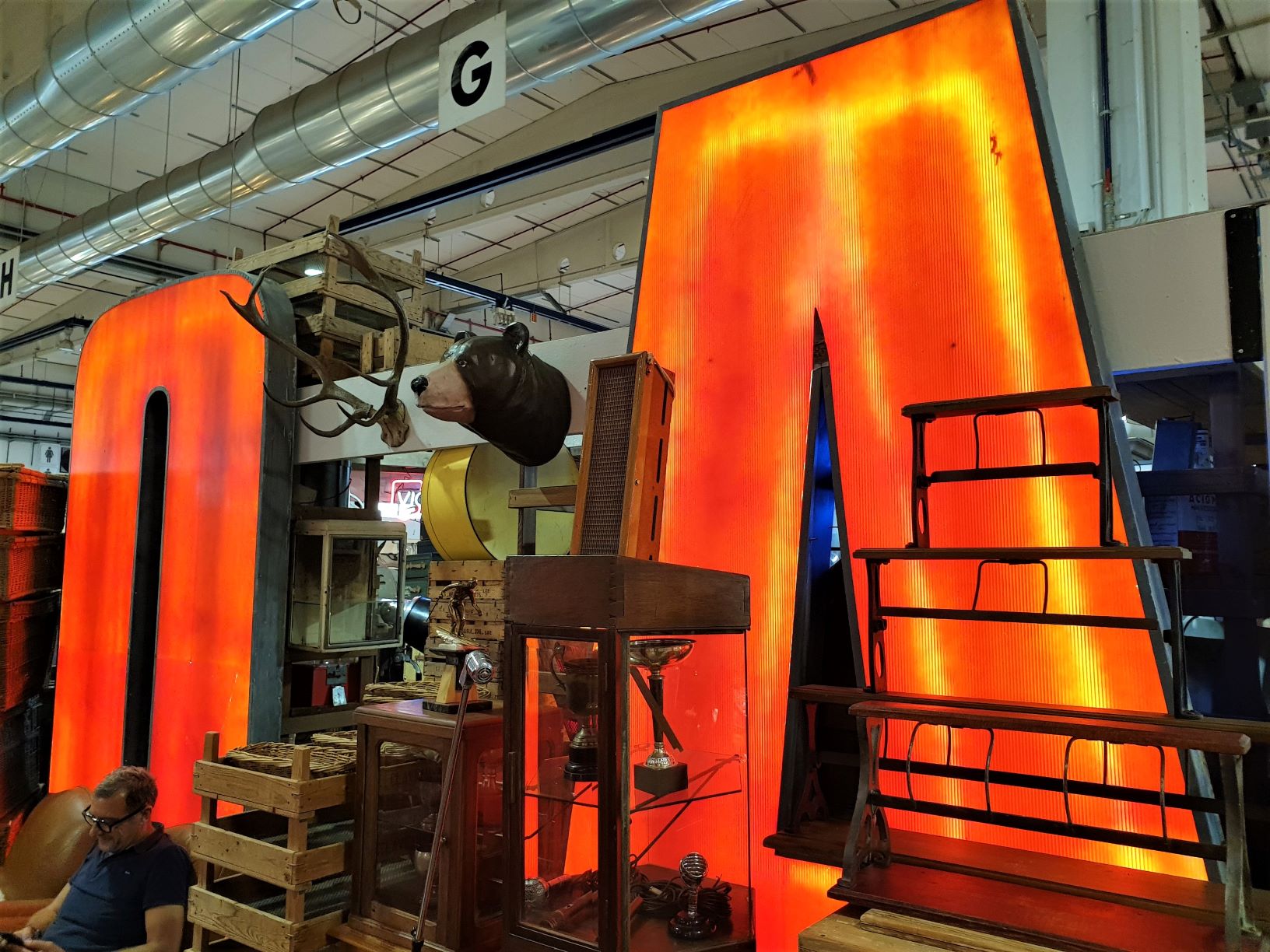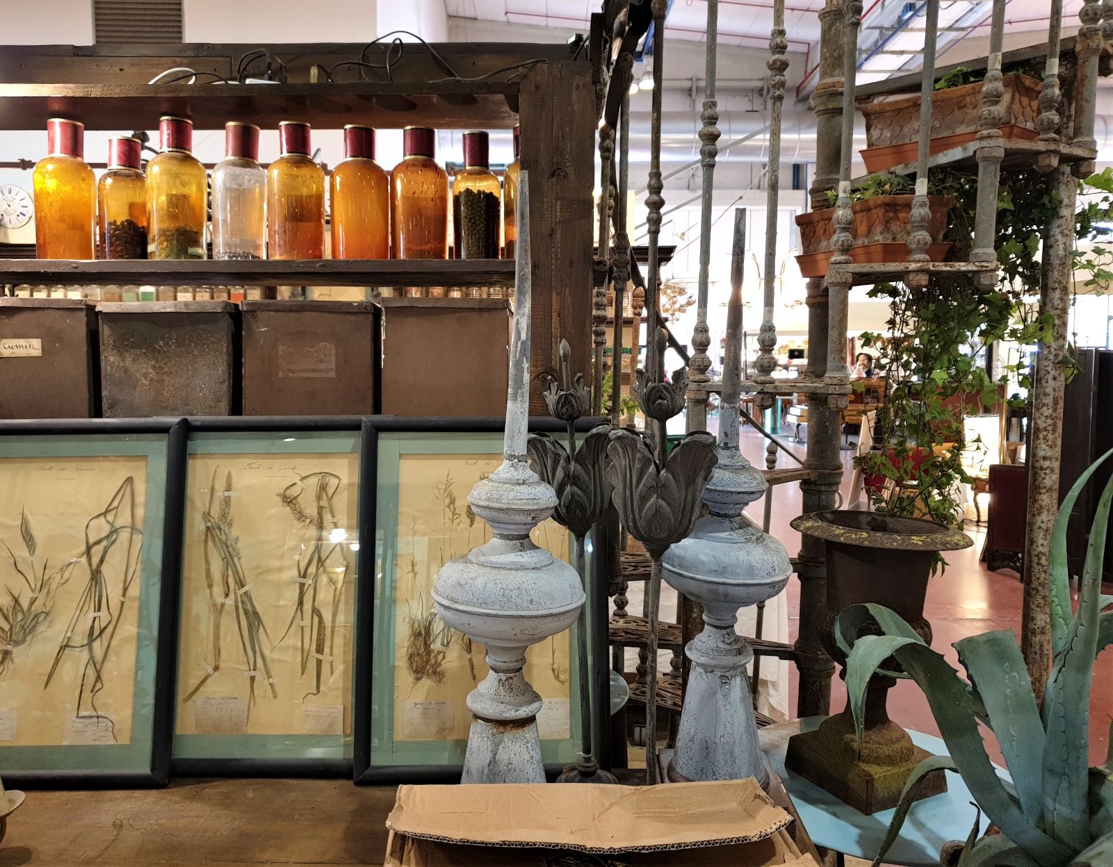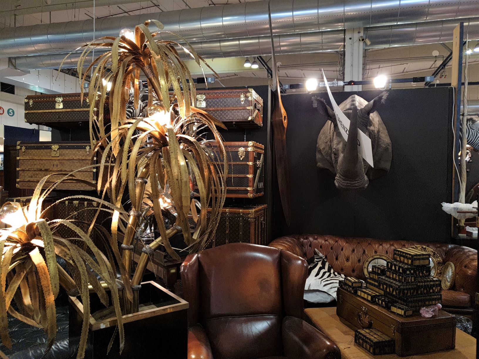 Stand d’autore. Miscellanea: bauli inizio 900, palme di luci anni 70, un rinoceronte in vetroresina e animali esotici impagliati (Alessi Lorenzi)