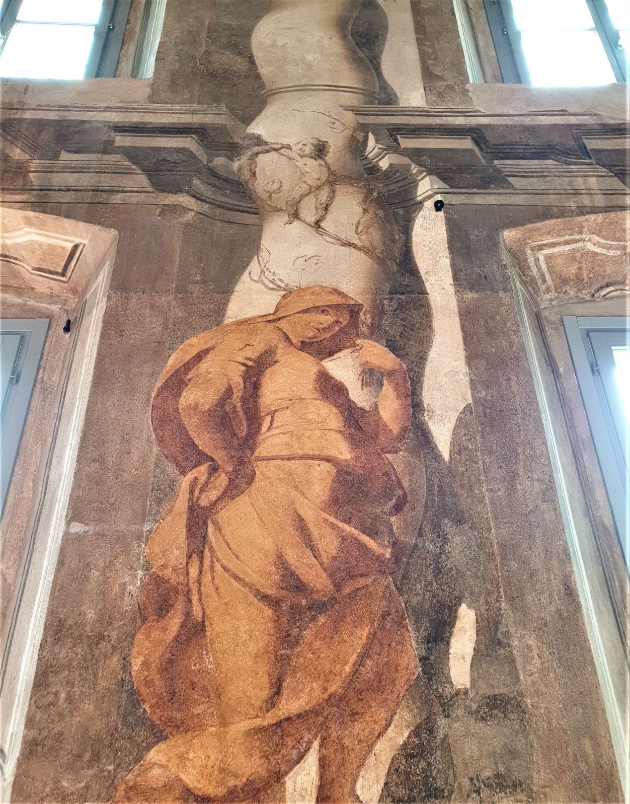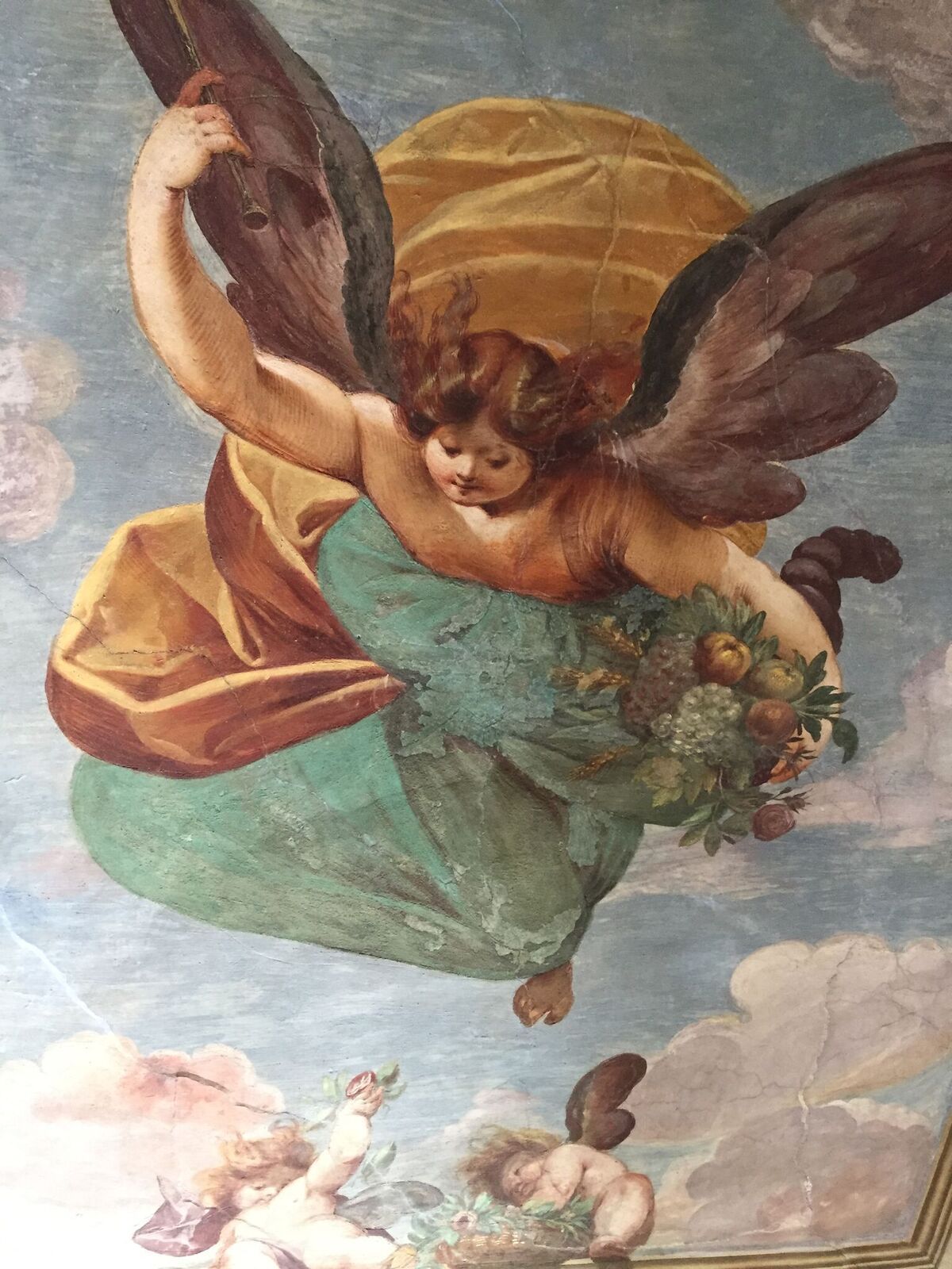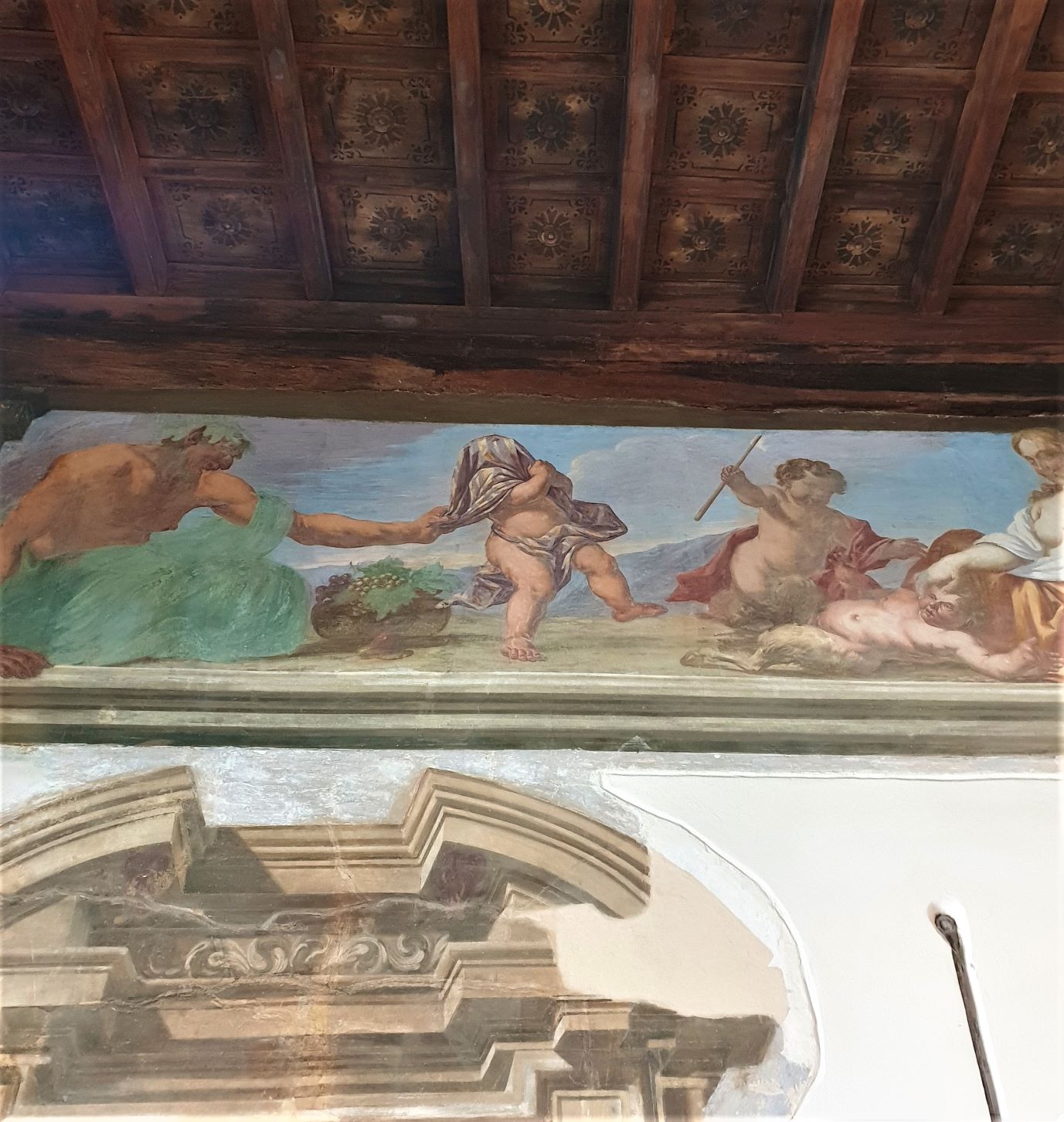 Combo di lusso in quel di Cusano Milanino. Mentre l’ideale modello urbanistico di Città Giardino, che connota il comune alle porte settentrionali di Milano, compie l’ordinata bellezza di un secolo e una decade (1909-2019), orgogliosamente si schiudono i battenti barocchi (simbolicamente per ora ancora, dato il cantiere ancora in loco) di Palazzo Omodei in centro città. Più che uno schiudere a dire il vero, un totale spalancare le porte a Cusano e a tutti gli interessati ad assaporarne il seicentesco sapore (ma solo tramite visite guidate). Massiccio e severo, seduce i visitatori letteralmente in maniera fisica (data la conformazione strutturale architettonica a U volta ad accogliere nel ventre-giardino gli astanti), calamitandoli all’interno del porticato inquadrato da cinque arcate a tutto sesto, preambolo e passaggio alla corte interna e alle sale rimesse parzialmente a lucido. Ma non potremmo parlare e scrivere di nulla, se non fosse per il lavoro e la dedizione di ViVOmodei, associazione di giovani e competenti volontari nata con l’obiettivo di valorizzare il territorio diffondendo la conoscenza della sua storia e del suo patrimonio, che accudisce e racconta questa perla affrescata, ai più sconosciuta. Visite accompagnate, dalla durata di un’ora. Accesso dalla parte “nobile” dell’edificio (quella dove soggiornava la signoria) lasciando i soffitti gotico fiammeggianti (come gusto non come epoca, data la moda neogotica che attanagliava l’europa intera un secolo e mezzo fa), che incorniciano il primo corridoio d’ingresso. Tappeto rosso srotolato per le sale, dal piano terra al primo piano. Sfilano in rassegna i preziosi saloni costellati da decorazioni sature di ricamate reminiscenze gotiche ottocentesche e architetture dipinte di metà Seicento, con tanto di balconcini di muratura e ferro battuto (affrescati) che si affacciano sulle stanze (c’è anche un balconcino vero e proprio per le messe di famiglia). Infilata di porte prospettiche con sfilata di putti e puttini ubriachi alle pareti (emblema perenne e perpetuo di Abbondanza che si riverbera in ogni angolo del palazzo), che si congedano nel soffitto stretto e schiacciato dell’Alcova. Qui la feconda dea, cornucopia traboccante di frutta e verdura alla mano, sparge fertilità dall’alto dei cieli sulla coppia dedita alla consumazione. Consumazione e soprattutto contemplazione estetico ed estatica che raggiunge (ma dipende dalla sensibilità di ciascuno…) la sua apoteosi nella successiva Sala di Rappresentanza. Sontuosa e imponente, avvolge lo spettatore in maniera totalizzante attraverso un turbinio di colonne tortili (da cui cascano fiori) e scenografie architettoniche (attinte a piene mani dalla pittura di Salvator Rosa, rese però in maniera assai più chiara e serena) dove si stagliano figure “bronzee” che riecheggiano fasti classici e pittorici del passato. Palese, ad esempio, il richiamo alla Maria Maddalena di Savoldo conservata in doppia versione alla National di Londra e al Getty di Los Angeles, datata esattamente un secolo prima (1540) dell’affresco del palazzo. Così come più o meno espliciti sono i rimandi alla pittura lombarda cinquecentesca (quanto alla quinta teatrale veneta e alla maniera romana) che si conciliano nei “trionfi” barocchi, coronati da un cielo dal sapore quasi tiepolesco. Un vero e proprio tesoro, finalmente visitabile dopo un lungo lavoro di restauro (non ancora terminato e con alcune lacune al limite dell’imbarazzante date dalla maldestria dei lavori effettuati), ora fruibile grazie alla competenza (e alla passione) dell’Associazione ViVOmodei.