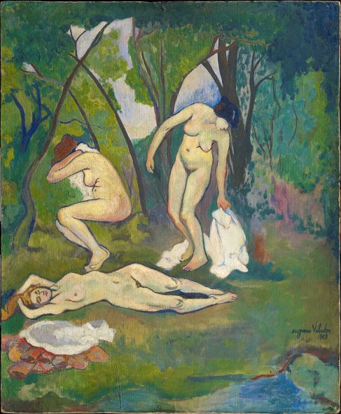 Se da una parte gli anni parigini furono seganti dalla dipendenza da alcol, dall’altra furono l’occasione per Modigliani di avvicinarsi al centro della cultura mondiale e di stringere relazioni con i più grandi artisti e poeti del tempo. Nei quartieri di Montparnasse e di Montmartre, Modigliani aveva infatti stretto amicizia con Guillaume Apollinaire, Chaïm Soutine, Paul Guillaume, Blaise Cendrars, Andrè Derain e Maurice Utrillo. Alcuni di questi lo accompagnano anche in mostra: Chaïm Soutine è presente con L’Escalier rouge à Cagnes, La Folle, L’Homme au chapeau e Autoportrait au rideau, a testimonianza di un legame che è andato oltre il confronto artistico. Spazi sereni, dove tutto è calmo e silenzioso, sono le atmosfere di Maurice Utrillo: come in Place de l’église à Montmagny, Rue Marcadet à Paris, Paysage de Corse. Suzanne Valadon e Andrè Derain contribuiscono con fascino e sensualità, inserendo il tema del nudo in aperta campagna con Trois nus à la campagne e Le Grand Bagneuses.
