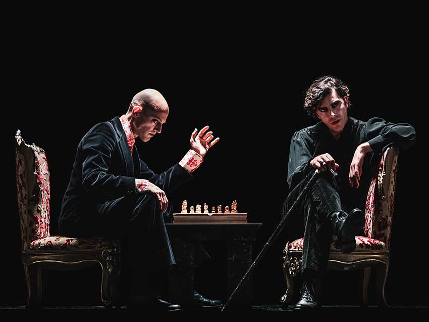Per quanto riguarda la performance a livello complessivo, Baracco è, per sua tradizione, molto attento all’impatto visivo della recitazione dei suoi attori. Anche nel caso di questa messa in scena, è evidente la cura da parte sua nei dettagli dei movimenti e del linguaggio non verbale dei personaggi sul palco. Cura che raggiunge il suo punto più alto nella furia di Margherita, ormai strega, che si dondola avanti e indietro, con una foga irresistibile sull’altalena a centro palco. Baracco ha, inoltre, scelto per i suoi attori un recitativo piuttosto marcato che rimane per lo più bilanciato e che incontra la particolare atmosfera altalenante tra realtà e finzione che è propria del testo di Bulgakov. Acclamati (e di più, adorati) dal pubblico, anche i due accompagnatori del professor Woland, Korov’ev e Behmot: simpatici personaggi macchiettistici ricreati come da manuale. Difficile sbagliarli.