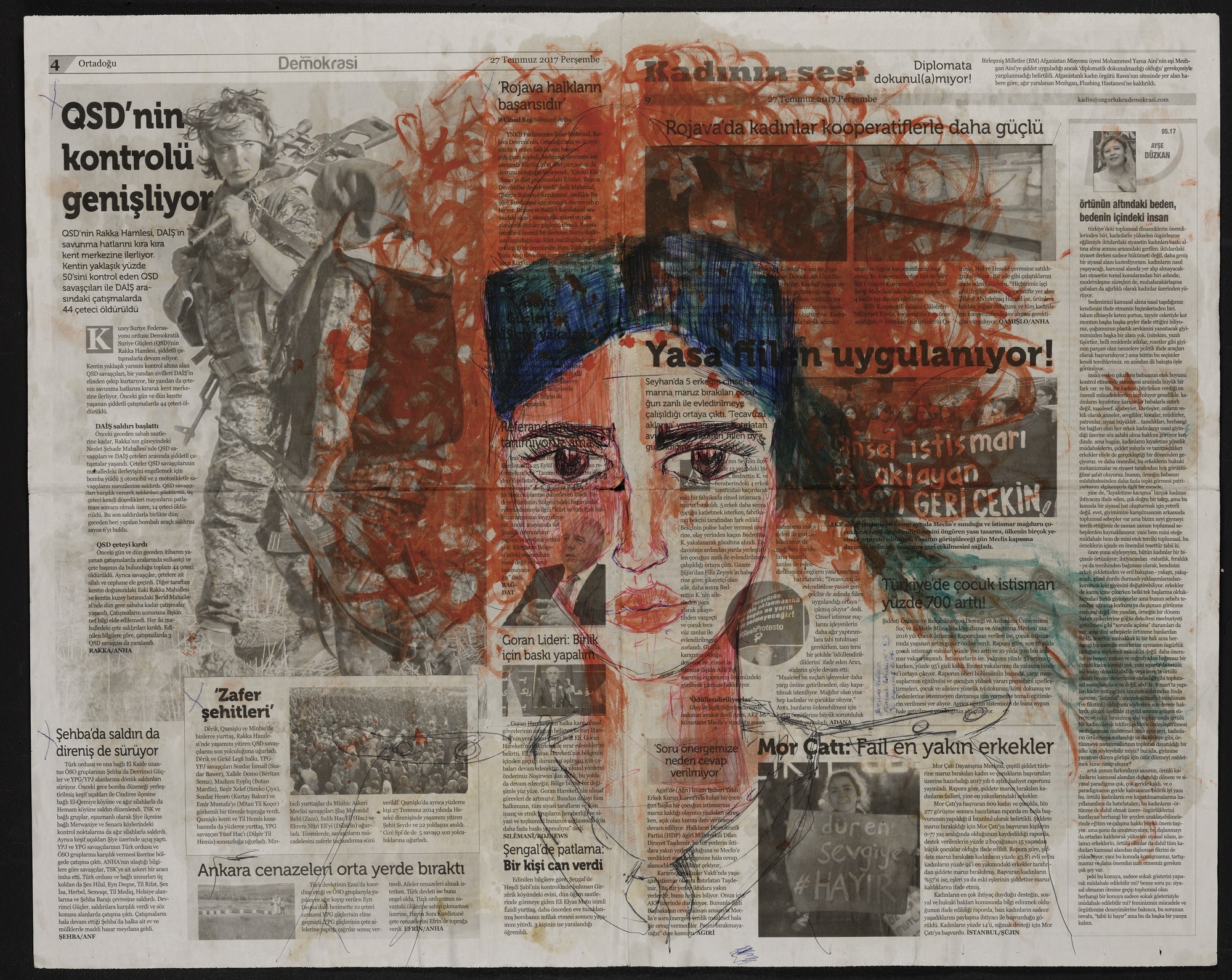 Le sale successive vedono la presenza di numerosi corpi femminili, dalle forme sensuali ma anche inquietanti, dato che spesso i dipinti prendono ispirazione dagli incubi delle sue compagne detenute. Emblematico il dipinto, nonché locandina del progetto espositivo, raffigurante una donna dalla cui testa fuoriesce la mano di Fatima, un riferimento alla cultura popolare ma anche la necessità per Zehra di rappresentare l’occhio vigile del giornalista. Sono esposti anche alcuni numeri di Özgür Gündem, il giornale di cronaca che Zehra e le compagne detenute hanno realizzato in cella per raccontare le condizioni carcerarie. Notizie scritte manualmente e illustrazioni, per dimostrare ancora una volta che fare cultura passa necessariamente per il fare politica.