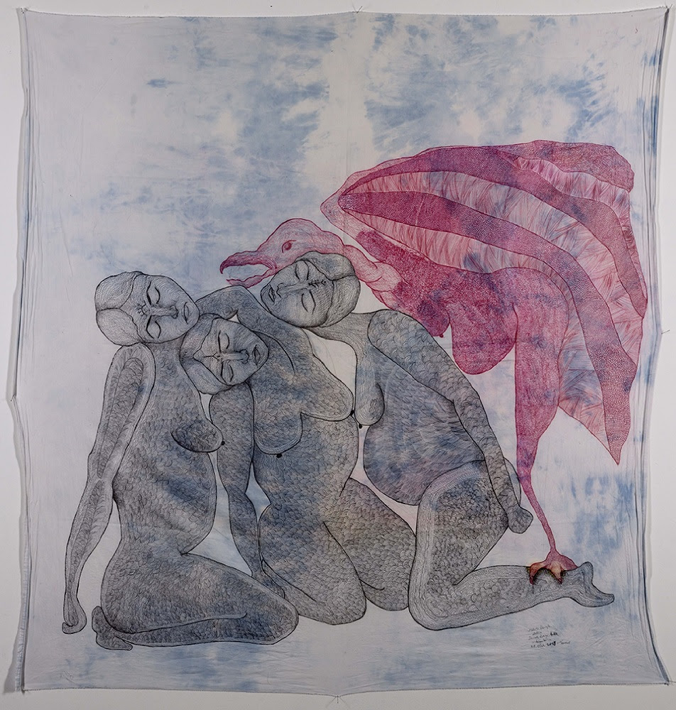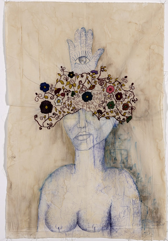 Zehra, che si era diplomata in Arte e Design nella sua città d’origine all’università di Dicle, riprende in mano il pennello. Questa volta al posto dei colori ci sono curcuma, caffè, cenere di sigaretta, sangue mestruale e altri residui organici, mentre i supporti spaziano da semplice carta da pacchi a lenzuoli e federe già ricamate, asciugamani sporchi e drappi di indumenti.
