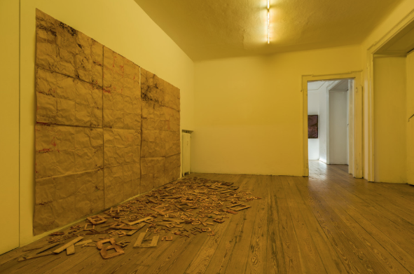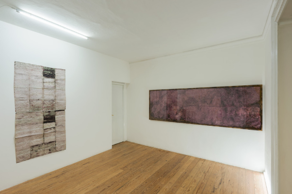 Renata Boero potrebbe avere ereditato i suoi riquadri da Agnes Martin, con cui condivide anche una connessione alla terra e un’ostinazione in una sorta di automatismo. Boero conferisce alla parte attiva della natura un ruolo autoriale nel suo processo, assimilando l’impatto del sottobosco a una firma sui suoi lavori. La linea scrupolosa e i colori controllati di Martin costituiscono le condizioni per un’esperienza di totalità, per un presente avviluppante. Per quanto meno percepibile in un primo momento, il lavoro di Boero è il risultato di un processo meticoloso di sperimentazione, misurazione e trasformazione dei materiali.